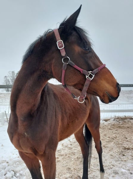 Almost three years old, still very youthful, friendly, and lovable French Thoroughbred mare, approximately 16.1 hh, still unbroken (fully vaccinated), seeking her new home. We took Tomika out of a racing stable about a year ago out of compassion, as she would have been condemned to die before her second birthday due to injuries. We have nurtured her back to health, cared for her lovingly, and allowed her to learn the basics of being a young horse, including social contact, paddock turnout, and more. Her injury (a minimal crack in the coffin bone caused by early overexertion during race training) has fully healed, with the bone properly fused, and she now walks barefoot without any issues – all under veterinary supervision and examination. Fortunately, she has never actually raced. In handling, she is very grateful, sweet, affectionate, and cuddly. She is now ready for new tasks and a new home with patience and understanding. Location: 95119 Please feel free to contact us for further questions or if you're interested. Price is negotiable.