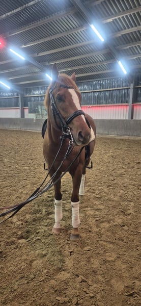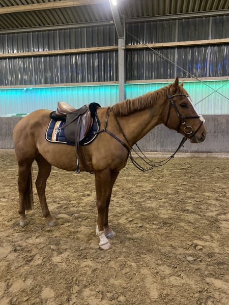 Wir verkaufen unseren 6-jährigen Vollblüter Wallach, abstammend von George Vancouver x Bidart. Er ist bis vierjährig im Besitz von The Dutch Master Stables Rennen gelaufen und wurde anschließend von Libertys Home übernommen, wo wir ihn für unseren Schulbetrieb erworben haben. Im letzten Jahr habe ich ihn von meinen Eltern übernommen, um ihn Dressur- und Springmäßig weiter zu fördern. Da mir momentan jedoch die Zeit fehlt, steht er nun zum Verkauf. Er ist barhuf, wird regelmäßig dem Hufschmied vorgestellt, ist geimpft und entwurmt. Beim Verladen zeigt er sich brav und unkompliziert. Er kennt das Ausreiten sowohl allein als auch in der Gruppe und zeigt sich dabei aufmerksam und unkompliziert. Springen, sowie das Arbeiten auf dem Vielseitigkeitsplatz sind ihm ebenfalls vertraut. Ein absoluter Allrounder – sowohl für den Freizeit- als auch für den Sportbereich interessant. Bei Interesse gerne melden unter +49 179 3722430
