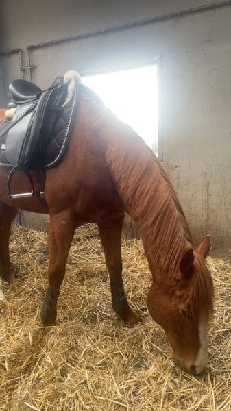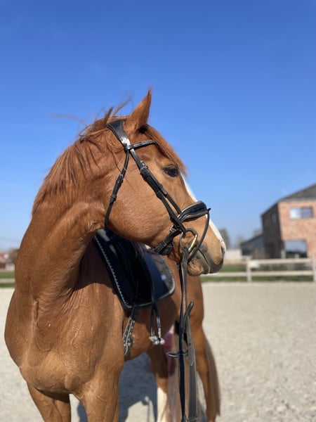 For sale: Nearly 8-year-old Thoroughbred gelding – a lovely recreational horse with a dressage foundation With a heavy heart, we are offering Bonnie, the 8-year-old gelding, for sale due to lack of time and motivation. He has been in his owner’s possession since the age of 3 and has never raced, which means he has an honest and calm temperament without a racing background. He performs neatly at B-level dressage and is a pleasure to ride—light in the hand and eager to work. He knows the basics well and is an enjoyable horse for recreational riding and further dressage training. In handling, he is the sweetest horse in the stable. He can be trusted even with the smallest children. In short, a super honest horse. In summer, he is well-behaved and can be ridden by less experienced riders. During winter, he can be a bit more lively, making him better suited for an experienced rider. He does not jump under saddle, but he has experience with free jumping. He previously had a slight conformational stance, but this has been nicely corrected through proper trimming and currently does not cause any issues in riding. Additionally, he is: - Gentle in handling - Regularly seen by the farrier and veterinarian - Social within the herd but somewhat dominant We are looking for a good, suitable home where he can continue to enjoy and work. 📍 Location: Geluwe, Belgium 📩 More info and videos available upon request 💰 Asking price: €5,000 (negotiable for the right home!)