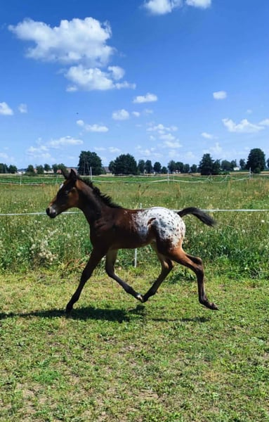 Elegancki Ogier Gorącokrwisty na Sprzedaż Z przyjemnością oferuje obiecującego młodego ogiera gorącokrwistego, urodzonego w 2025 roku, docelowo około 165 cm w kłębie. Ten dobrze urodzony ogierek charakteryzuje się efektowną maścią tarantowatą, doskonałą budową i zrównoważonym temperamentem. Został starannie wychowany, z naciskiem na wszechstronność, co czyni go odpowiednim kandydatem do skoków przez przeszkody, WKKW lub ujeżdżenia. Jego szlachetna budowa i naturalny ruch stanowią solidne podstawy do dalszego treningu i rozwoju. Fantastyczna okazja dla każdego, kto chce zainwestować w utalentowanego i obiecującego młodego konia. Aby uzyskać więcej informacji lub umówić się na oglądanie, prosimy o kontakt.