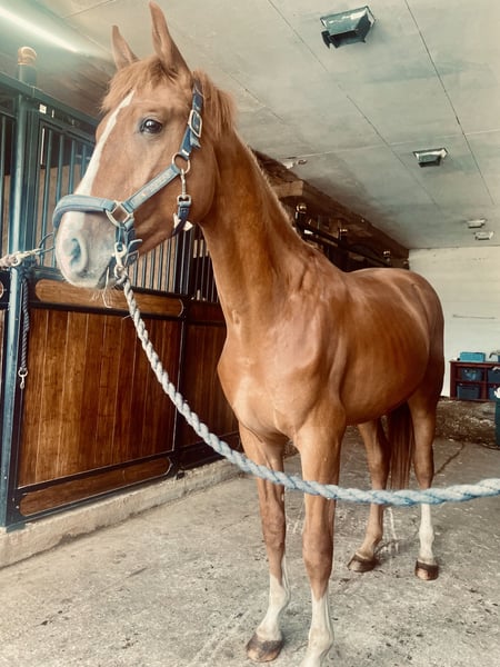 Our beautiful “Bulle,” as he’s called on a daily basis, is now looking for a new home! Norwegian Warmblood, cryptorchid stallion, born 2023. Sire: Giga Star De Tiji Dam’s sire: Graf Top Bulle is a fantastic 2-year-old with top jumping bloodlines. His sire, Giga Star De Tiji, was Norway’s most used breeding stallion in 2021 and has several placings in international 1.45m classes. According to Stutteri B, his offspring are brave, elastic, and possess an exceptional canter. Here’s your chance to develop your next superstar! He is quick, supple, elastic, and balanced in his movements. He has excellent conformation and is easy to handle. He jumps and moves with promising technique, showing plenty of potential and capacity! Bulle has developed evenly and harmoniously — he’s very well-balanced, strongly built, yet athletic and light. He has good, strong hooves. He’s a brave, curious, and intelligent type — rarely spooks or gets nervous. Calm and well-behaved in his stall, stands nicely tied in the aisle, and is very easy to handle. He has been lunged and free-jumped. We started introducing tack this summer, which went perfectly smoothly. He’s worn a saddle, girth, boots, and bridle with bit without any issues. Has been regularly followed up with vaccinations, hoof care, and deworming. Bulle is a very social and kind guy. He loves attention and cuddles and is soon ready to start his life as a riding horse! Given how easy and straightforward he is in all handling, we believe he will be very simple to break in!