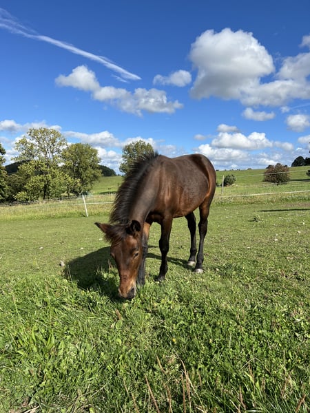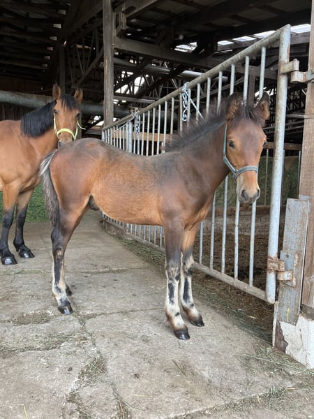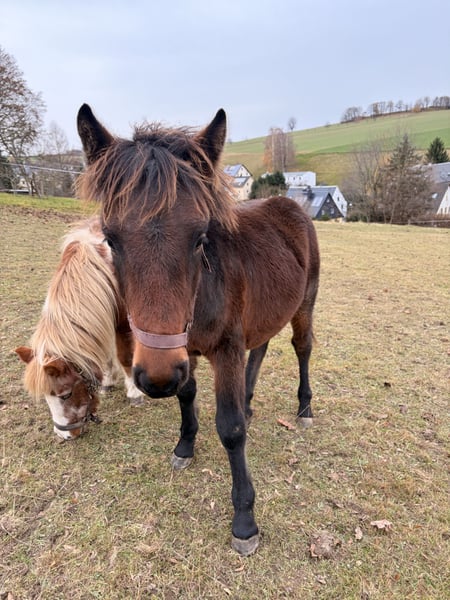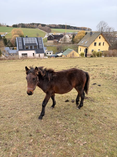 Schreibt mich gerne an, der Preis ist verhandelbar, macht gerne einen Termin zum kennenlernen aus :) Verkaufe hier unser kleines Hengst Absetzer Fohlen Fiorè. Er ist im März 2025 geboren und wird jetzt abgesetzt. Fiorè ist sehr aufgeschlossen, freundlich und neugierig. Er kommt immer sofort an den Zaun, wenn man ihn ruft. Er kennt das Fohlen ABC, also Führen, Hufe geben, Putzen, Halftern und überall angefasst werden. Fiorè ist auch bereits schon mehrfach Hänger gefahren, sowohl mit und ohne seine Mutti, und war dabei stets ein Musterschüler. Ebenso liebt er es gekrault und geputzt zu werden. Selbstverständlich ist Fiorè Stromzaun sicher. Er wird sicher ein Endmass von ca. 1,55m bis 1,60m bekommen, dementsprechend wird er Mal ein super Familienpferd. Seine Mutti (auf dem letzten Foto zu sehen) hat ein Maß von 1,50m, er wird aber größer werden. Momentan ist der kleine Mann 1,30m groß und wächst munter weiter. Der Pass für ihn ist beantragt, allerdings ist er noch nicht da, er bekommt einen grünen Equidenpass. Gechipt ist er bereits. Die Nummer ist auch vorhanden. Seine Farbe ist sehr schön, da er sehr Dunkelbraune und Hellbraune Stellen hat und keinerlei Abzeichen. Die letzten 3 Bilder sind die aktuellsten. Er steht momentan 24/7 auf der Wiese, kennt aber auch die Box mit täglichem Weidegang. Fiorè steht momentan mit 2 Shetty Stuten zusammen, stand aber auch schon in einer gemischten Herde. Er zeigt sich nicht Hengstig und springt auch bisher nicht auf. Er ordnet sich unter und geht Streit aus dem Weg. Sollte der Kleine Schönling euer Interesse geweckt haben, schreibt mich dazu gerne an. Eine Besichtigung ist nach Termin Absprache selbstverständlich möglich. Ein Auszug ist ab sofort möglich. Privatverkauf, daher keine Gewährleistung, Garantie oder Rücknahme!