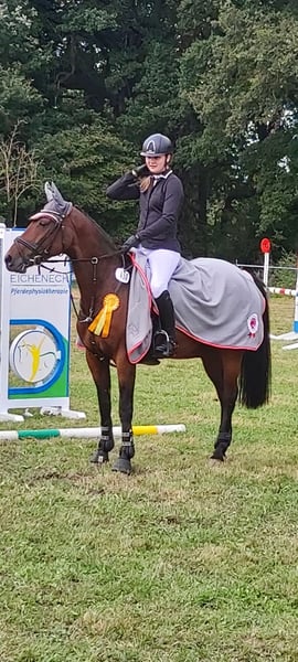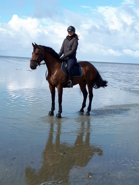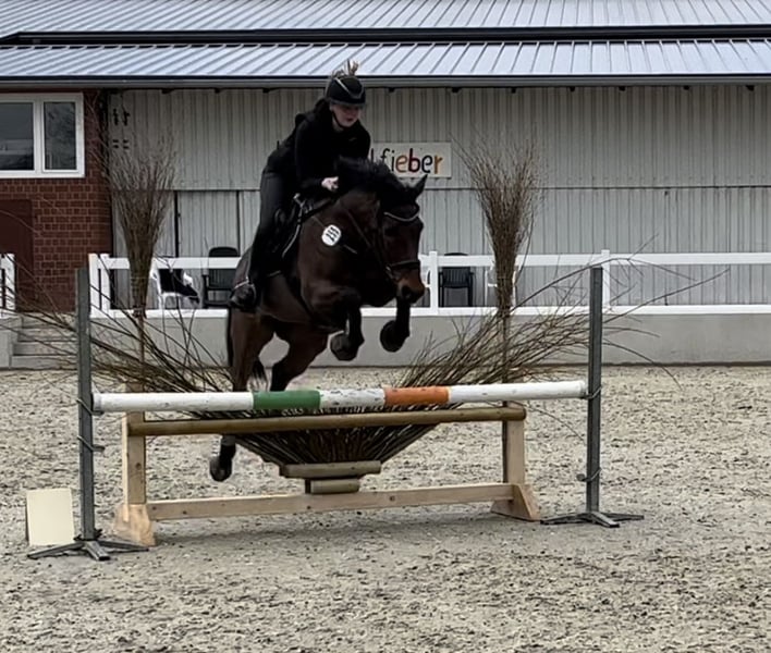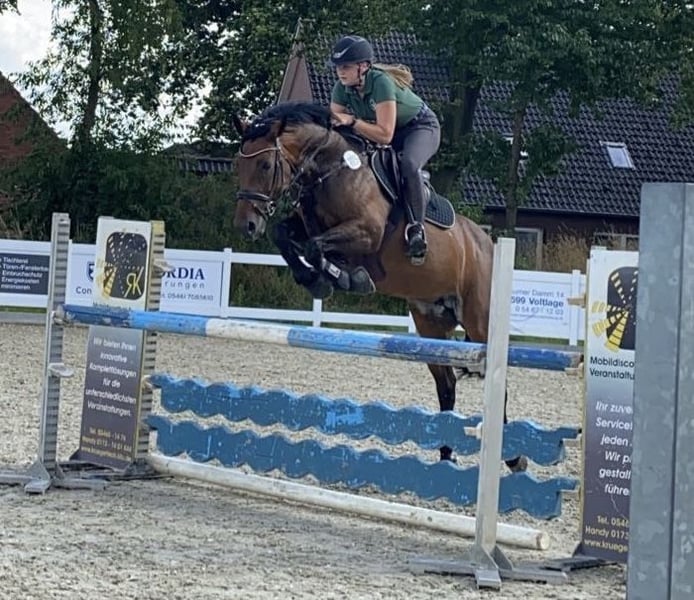 Schweren Herzens möchte ich meine "Püppi" verkaufen. Sie ist hauptsächlich im Parcours zuhause, in der täglichen Arbeit kann man aber auch dressurmäßig richtig Spaß mit ihr haben. Auch Ausritte sind mit ihr sowohl alleine als auch in der Gruppe möglich. Im Springen ist sie bis L siegreich. Durch ihren starken Charakter ist sie nicht anfängergeeignet, jedoch super händelbar wenn man sie etwas kennt. Sie wird nie kopflos und passt immer auf ihre Menschen auf. Aufgrund ihrer Größe ist sie super als Umsteiger von Pony auf Pferd geeignet, dabei deckt sie auch größere Reiter sehr gut ab (Reiterin auf allen Fotos ist ca. 180 cm groß). In der Herde ist sie verträglich, auf dem Turnier muss man jedoch etwas aufpassen, dass andere Pferde ihr nicht zu nahe kommen. Im letzen Jahr mussten wir leider eine Reizung der Sehne feststellen, wodurch vorher schon etwas Unsicherheit im Parcours auftrat. Nach einer Pause wurde sie ganz langsam wieder antrainiert und ist jetzt seit Anfang des Sommers wieder vollständig im Training. Daraufhin konnte sie sich auf dem ersten Turnier nach der Pause auch sofort wieder an 4. Stelle in einem A**-Springen platzieren. Videos können gerne auf Anfrage zugeschickt werden. Bei Interesse oder weiteren Fragen gerne unter dieser Nummer melden 01738662736. Falls ich nicht erreichbar bin, können Sie auch gerne eine Nachricht über WhatsApp hinterlassen und ich melde mich zeitnah zurück.