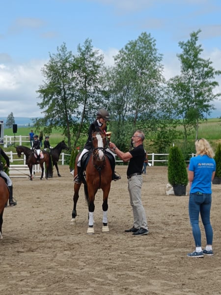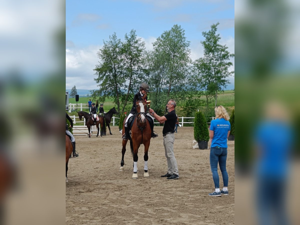 Elegant Warmblood mare for sale – perfect for show jumping enthusiasts! Sunny, a Hungarian Warmblood born in 2006, is very gentle and suitable as an all-rounder for beginners. She has been part of a riding partnership with us, participating in small competitions. She has proven to be the joker in special tests, excelling in both dressage and jumping. She loves going for rides out in the countryside. Due to gallstones in her fetlocks, she is only suitable for limited riding. She is kept in an open stable, gets along well with other horses, enjoys the company of children, and loves being groomed. Sunny has given birth to three foals, all of which can be admired at our farm (breeding mare). We wish Sunny a good new home. Quality over price. Please contact us if interested.