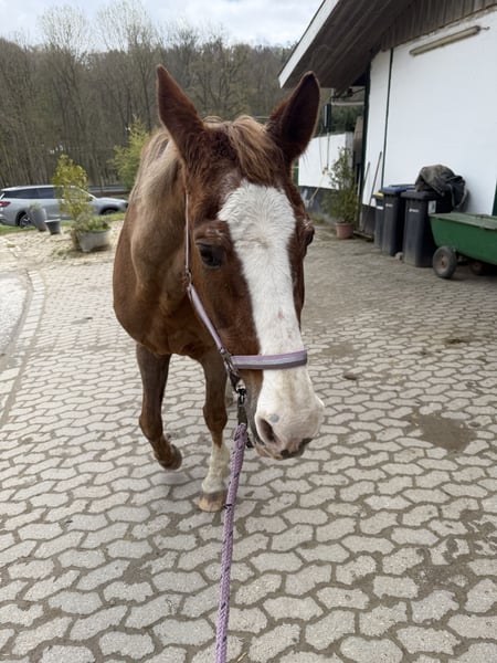 Hallo zusammen Ich such für meine Stute Dalida eine Pflege/Reitbeteiligung .Dalida ist eine 27 jährige Stute die noch gern bewegt worden möchte .Für ihr Alter ist sie noch sehr fit! Was ich suche 1 oder 2 mal pro Woche lockeres arbeiten vom Boden aus oder reiten, Longenarbeit, Stangenarbeit, Spazieren gehen, betüddeln und die Seele baumeln lassen Man kann bei uns auch Unterricht nehmen mit ihr was auch gar kein Problem ist. Wir stehen in Heiligenhaus am Brokhorsthof . Auf Grund ihrem Alter darf sie keine großen Sprünge mehr machen ,aber kleine Kreuze gehen noch mit ihr und es gehen auch keine Turnier mit ihr! Wenn du Interesse hast dalida und mich kennen zu lernen dann melde dich gerne bei uns! Der Preis wäre bei 1 mal die Woche 80€ im Monat und bei 2 mal die Woche im Monat 120€