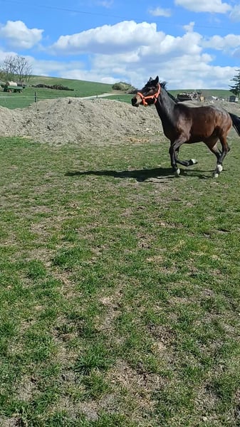 Verkaufe eine vielversprechende junge Warmblutstute, geboren im Jahr 2023. Sie präsentiert sich in einem eleganten Braun und hat ein Stockmaß von ca. 152 cm. Diese charmante Stute ist ideal für den Freizeitbereich und überzeugt durch ihre freundliche Art. Sie wurde liebevoll aufgezogen und ist bereit, ihre weitere Ausbildung in Angriff zu nehmen. Ein vielversprechendes Pferd für alle, die einen zuverlässigen Freizeitbegleiter suchen. Leider hat sie noch mit einer Verletztung zu kämpfen, deshalb unterwert zuverkaufen.