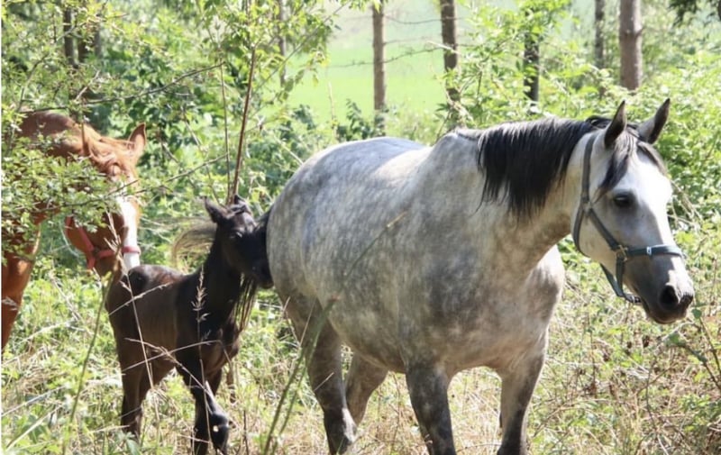 Catch Me If You Can, for sale. I am looking for a supportive home for Catchy. She is not only a real eye-catcher but also a promising, affectionate young horse. Catchy is growing up well-socialized in a herd environment and is already familiar with children, dogs, trailer loading, the farrier, and trail riding as a companion horse at the time of sale. Price will increase with further training. In the last two pictures, you can see her mother and father.