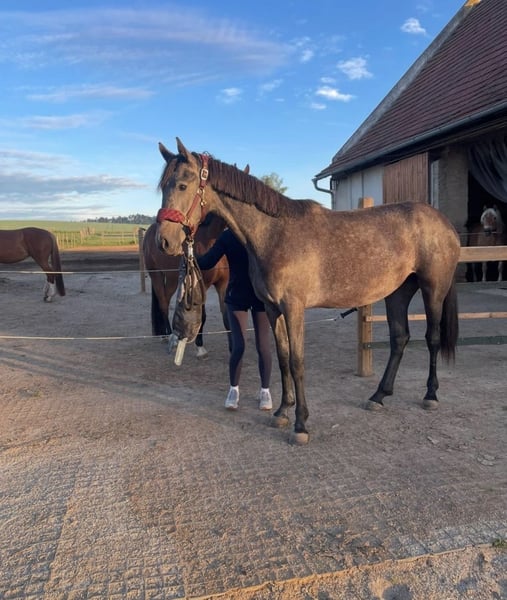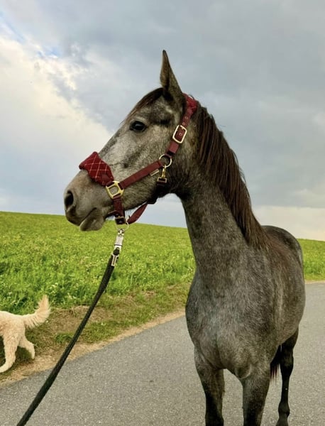 Catch Me If You Can, à vendre. Je cherche un foyer bienveillant pour Catchy. Elle n'est pas seulement une vraie beauté, mais aussi un jeune cheval prometteur et affectueux. Catchy grandit parfaitement socialisée au sein d'un troupeau et connaît déjà des enfants, des chiens, le transport en van, le maréchal-ferrant et les sorties en tant que cheval de main. Le prix augmentera avec une formation supplémentaire. Sur les deux dernières images, on peut voir la mère et le père.