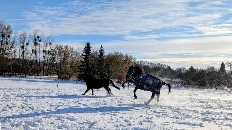 Schweren Herzens muss ich leider meine 2 Stuten abgeben .. Tinker/Haflinger Mix Stute. Geboren 2020. Rappe. Ca. 1,45m. Kennt Reitergewicht und Equipment. Leider nicht weiter ausgebildet. Daher als Roh abzugeben. Absoluter Schatz im Umgang. Kennt alles was es ringsherum gibt. Hunde mag sie allerdings gar nicht. Sie hatte im Sommer leider einen Reheschub. Wer sich damit auskennt , weiß damit umzugehen und welche Haltungsform für sie passt . Bei uns stand sie Tagsüber draußen und Nachts in einer Box . Kennt aber auch 24/7 draußen . Sonst war sie nie krank. Hufschmied, Tierarzt und Verladen - kein Problem Könnte noch soviel zu ihr schreiben... Ich wünsche mir nur den absoluten Bestplatz für sie Traberstute. Geboren 2003. Rappe. Ca. 165. War geritten und gefahren. Kam in jungen Jahren aus dem Sport. Im Umgang absoluter Schatz wenn sie vertrauen gefasst hat. Fremden gegenüber eher skeptisch. Ist ihrer Vergangenheit geschuldet. Verladen und Hufschmied kein Problem. Tierarzt ist manchmal ein Problem, da Angst. Meist bei männlichen Tierärzten. Hat Arthrose, braucht aber keine Medikamente und wenn sie genug Bewegung bekommt, merkt man es kaum. Abzugeben als Beisteller. Evtl. noch für gemütliche Ausritte . Bei mir hat sie jetzt ca. 2 Jahre aber nichts mehr gemacht . Beide stehen seid 6 Jahren zusammen, es wäre schön wenn es eventuell so bleiben könnte. Ist aber kein muss. Mit anderen Pferden funktioniert es auch super. Transport kann übernommen werden. Wer Interesse hat, gern Schreiben. Absolut Platz vor Preis Keine Händler oder ähnliches