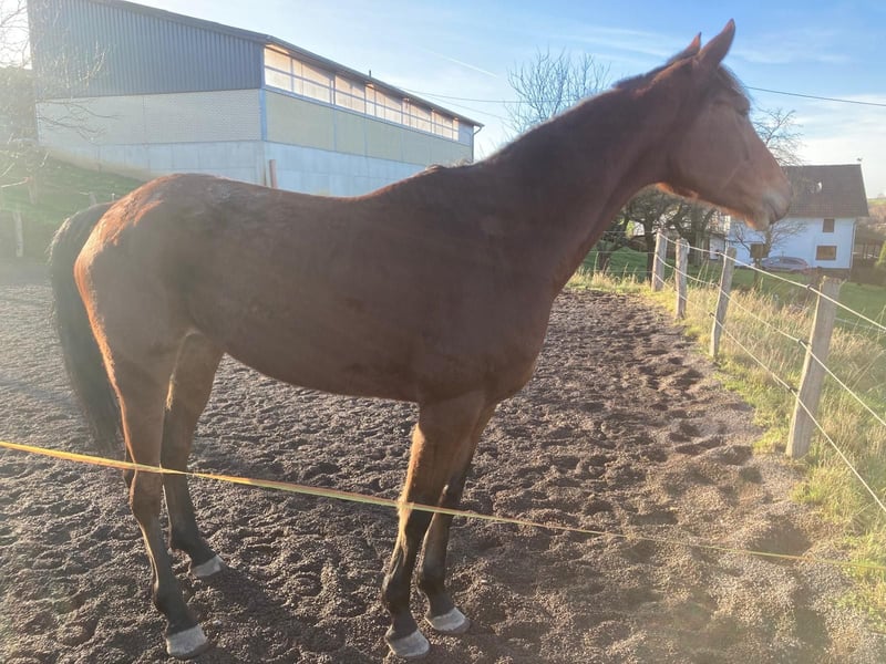 Hallo, ich biete hier meine niederländische Traberstute Mel zum Verkauf an. Sie ist sechs Jahre jung und hat ein Stockmaß von 165 cm. Mel befindet sich erst seit kurzem in meinem Besitz. Ich gebe sie ab, da ich befürchte, dass ich aufgrund mangelnder reiterlicher Kenntnisse mit ihrer Ausbildung überfordert sein werde. Mel ist erst vor kurzem aus dem Trabrennsport gewechselt. Sie wurde angeritten, wie oft sie unter dem Sattel war, kann ich aber nicht sagen. Nach Angaben des Vorbesitzers beherrscht sie die 3 GGA, ist platz- und geländesicher. Als sie mir auf dem Platz vorgeritten wurde, sah das sehr gut aus, allerdings saß da auch eine Reiterin im Sattel die wirklich gut reiten konnte. Ich selbst bin sie noch nicht geritten. Mel ist gesund und verletzungsfrei. Sie ist aufgeweckt und macht einen sehr agilen und bewegungsfreudigen Eindruck. Im Umgang mit Menschen ist Mel aufgeschlossen und freundlich. Sie gibt ohne Probleme die Hufe, ist schmiede- und verladefromm. Auch mit anderen Pferden versteht Mel sich gut. Aktuell steht sie in einer gemischten Herde. Ich wünsche mir für Mel ein Zuhause mit erfahrenen Händen, unter denen sie sich gut weiterentwickeln kann. Bitte nur ernstgemeinte Anfragen. Mit freundlichen Grüßen, Christine Wolf