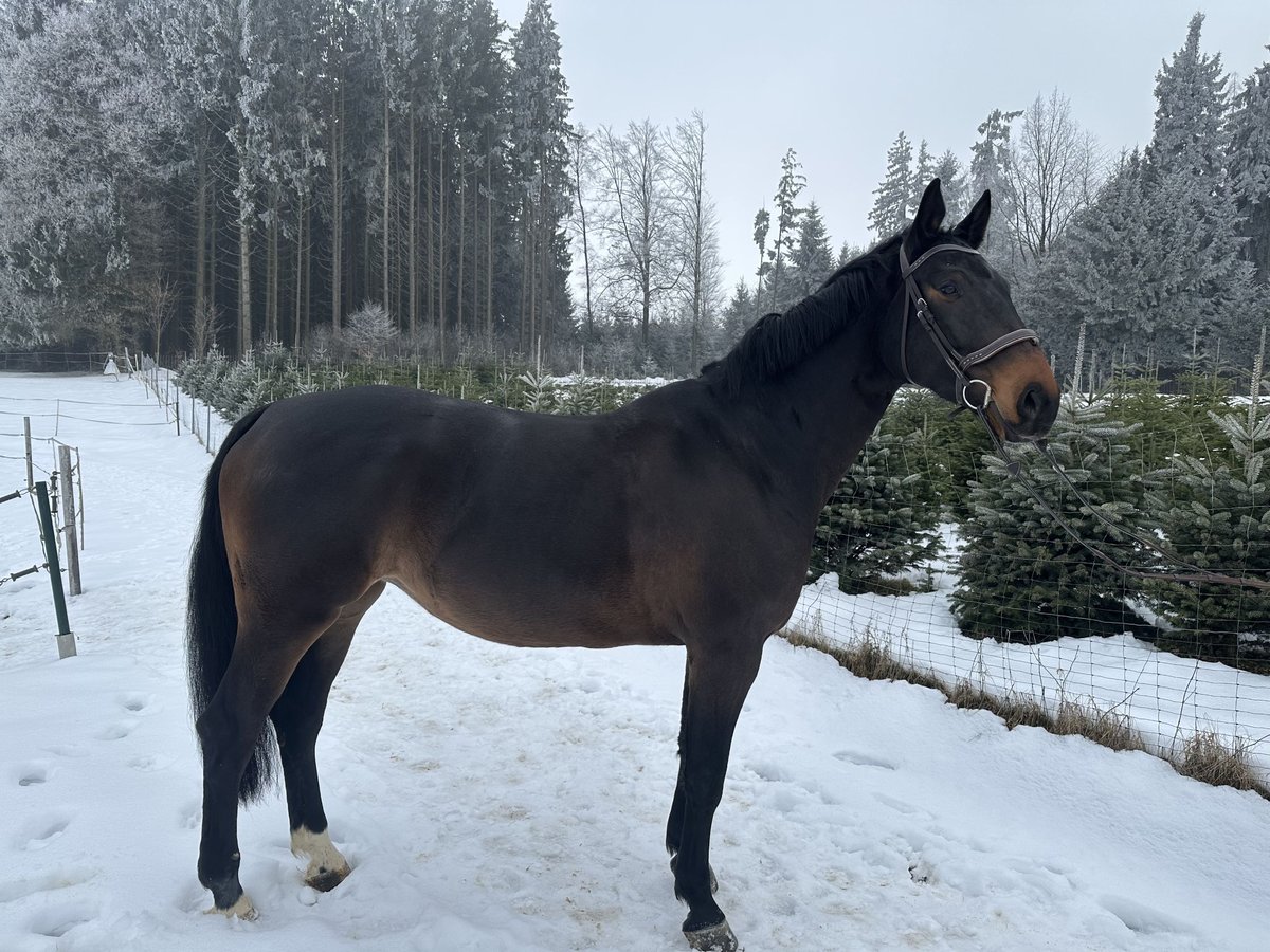 Menschenbezogene, liebenswerte Stute aus eigener Zucht, wurde selbst ausgebildet aus privaten Gründen zu verkaufen. Sie zeigt sich stets leistungsbereit, möchte sowohl im Umgang als auch unterm Sattel immer als richtig machen. Leichtrittige Stute mit Potenzial am Sprung. Ideale Partnerin für den gehobenen Freizeitsport als auch erfahrene Amateure mit Turnierambitionen