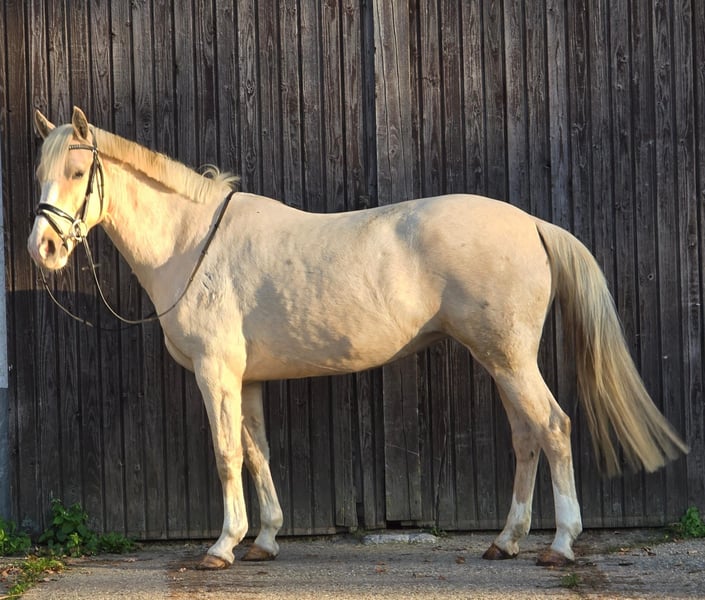 ✨💛 Wunderschöne Palomino-Stute zu verkaufen – Cherry! 💛✨ Mit großer Freude stellen wir euch unsere traumhafte Palomino-Stute Cherry vor – ein echtes Schmuckstück mit goldenem Fell und goldenem Charakter 🌟. 🌸 Geboren: 2017 📏 Stockmaß: 1,54 m 🐴 Name: Cherry Cherry ist eine elegante, harmonisch gebaute Stute, die gut abdeckt und mit ihrem bezaubernden Aussehen alle Blicke auf sich zieht ✨. Sie besitzt drei sehr schöne Grundgangarten – einen fleißigen, taktsicheren Schritt, eine ausdrucksstarke, schwungvolle Trabbewegung und eine leicht zu sitzende, runde Galoppade 💃. Cherry ist ein absolutes Verlasspferd, das sich sowohl für Einsteiger als auch für fortgeschrittene Reiter bestens eignet 🤩. Sie ist im täglichen Umgang stets brav, freundlich und unkompliziert. Beim Reiten zeigt sie sich motiviert, arbeitswillig und immer bemüht, ihrem Reiter zu gefallen ❤️. 🏆 Auf Turnieren hat Cherry schon mehrfach ihr Talent unter Beweis gestellt – sie war bis zur Klasse L2 Dressur erfolgreich und hat dabei immer eine Schleife mit nach Hause gebracht 🎀. Eine echte Schleifensammler, die mit ihre Charme und ihre Konstanz überzeugt! 🌳 Auch im Gelände ist Cherry ein echter Schatz: Sie geht sowohl alleine als auch in der Gruppe entspannt ins Gelände, ist verkehrssicher und genießt jeden Ausritt mit Ruhe und Gelassenheit ☀️🍀. 💉 Gesundheitlich ist sie top in Schuss – Cherry hat sehr gute Röntgenbilder ohne Befund ✅ und ist klinisch sowie röntgenologisch einwandfrei. 🚛 Transport ist möglich, sowohl innerhalb Deutschlands als auch ins Ausland. 📞 Für mehr Informationen oder einen Besichtigungstermin: +31 6 15117573 💫 Cherry ist ein Pferd, das man einfach lieben muss – wunderschön, ehrlich, talentiert und mit einem Herzen aus Gold 💖. Eine wunderbare Partnerin für Sport, Freizeit und Turnier – und eine echte Schleifensammlerin! 🎀🐴✨ 💛🌟 Cherry – ein goldenes Herz in einem goldenem Herz!