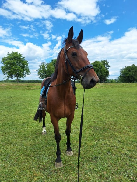 A beautiful, well-behaved and healthy trotter gelding is for sale. He is dominant in the herd, but by no means aggressive. He is in the box at night and outside during the day. He is very cuddly towards people of all ages and loves children. Grooming, saddling, washing, leading, etc. are no problem at all. He is very comfortable to ride under saddle and is a real rocking horse at a walk. Ideal for long, comfortable rides in the countryside. He can trot from slow to very fast. While other horses canter, he can trot along just as quickly... He is very down to earth and not jumpy. He is very happy and motivated to ride out in the herd. When ridden out alone, he likes to go back to the stable, but if the rider is calm and consistent, he relaxes very quickly even when ridden out alone :-). Please contact me if you are interested or have any further questions. Thank you very much!