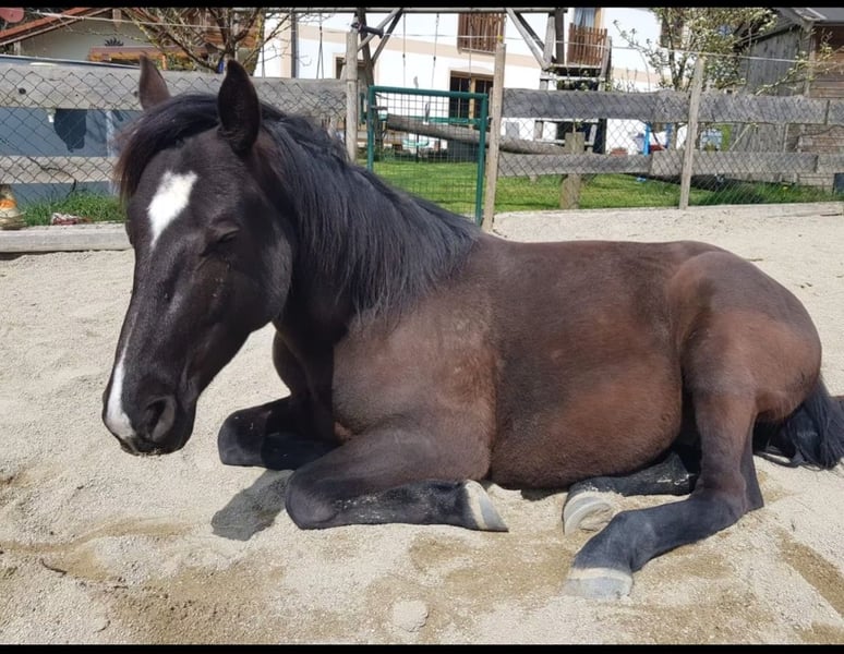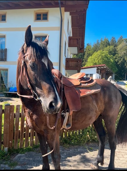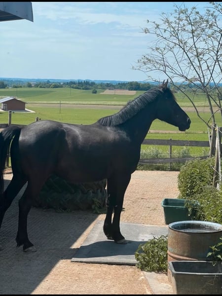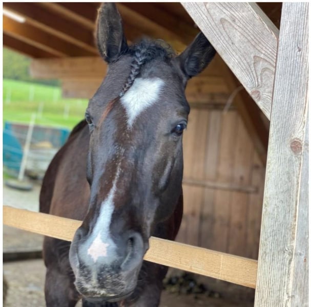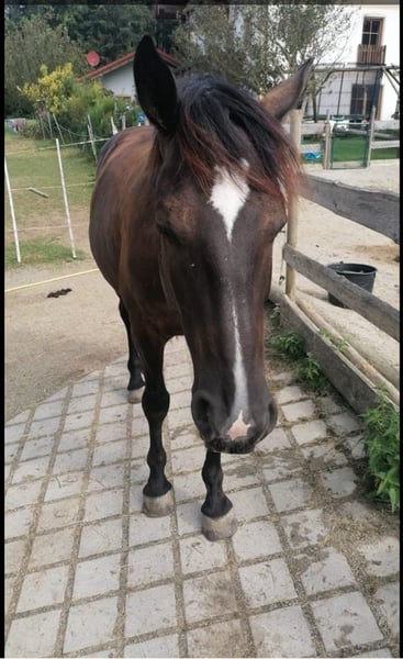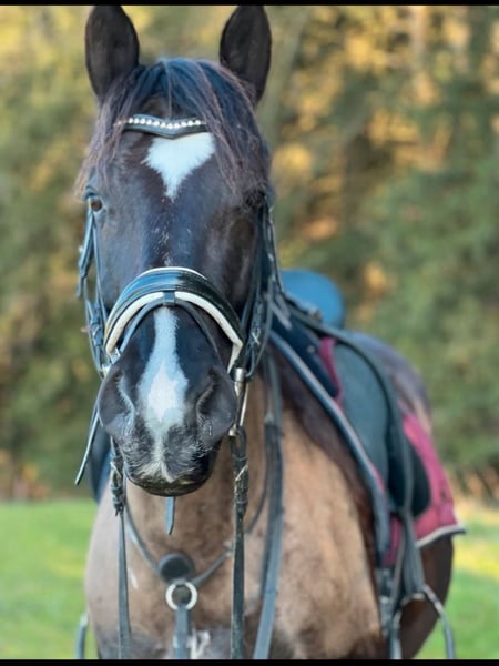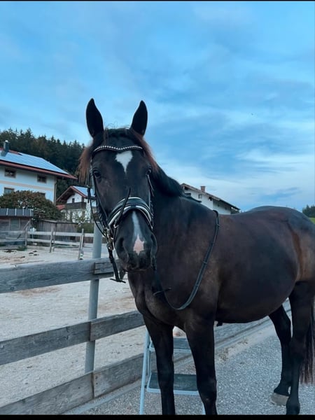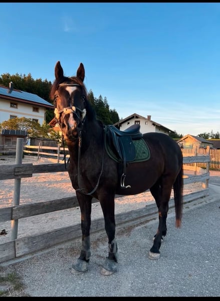 Schweren Herzens verkaufen wir unseren 9 jährigen ungarischen Warmblut Wallach aus Zeitmangel. Eventuell wäre auch eine Verfügung im Umkreis von 30 km vorstellbar. Er ist 160 cm groß und genoss eine schonende späte Ausbildung im Profi Beritt, quasi unverbraucht. Er ist sehr anhänglich, verschmust und liebt es gekrault zu werden, mit Lekerlies ist er auch immer bestechlich ;-) Er ist kerngesund, hat keinerlei Allergien oder Exeme noch hatte er irgendwelche Verletzungen. Bei uns wurde er überwiegend Freizeit mäßig im Gelände geritten, regelmäßiger Unterricht und Korrektur reiten unserer Reitlehrerin auf dem Platz. Er hat schöne weiche Gänge, geht flott vorwärts ist aber gut händelbar, hört gut auf Stimme. Freiarbeit macht ihm auch sehr viel Spaß. Natürlich ist er regelmäßig entwurmt, Hufe regelmäßig bearbeiten (Barhufer mit sehr guter Hufqualität und brav bei der Bearbeitung), in regelmäßigen Abständen der Ostheopatin vorgestellt und die Zähne sind frisch im Herbst gemacht worden. Bei uns steht er in einem kleinen Offenstall in gemischter Herde was super funktioniert (nicht hengstig). Wir würden uns auch für sein neues Zuhause Offenstall Haltung wünschen. Bei uns wird er englisch geritten könnten ihn uns aber auch gut als Western Pferd vorstellen. Er geht alleine und in der Gruppe ins Gelände, kennt Autos, Traktor, Maschinen, Hunde und was man hald noch so begegnen kann und ist dabei relativ relaxt, aber es ist ein Lebewesen und er kann sich auch mal erschrecken, er ist aber kein Durchgängen und kommt sehr schnell wieder zur Ruhe. Durch seine späte Ausbildung ist er (noch) kein Kinder oder Anfänger Pferd, er brauch jemanden der ihm Sicherheit geben und Grenzen setzen kann. Er ist nie böse, kein treten oder beißen, nur am Anfang testet er gerne mal ob man sich durchsetzen kann ;-) Keine Abgabe an Reitschulen und Händler! Wir wünschen uns jemanden der ihn weiter fordert und fördert und bei dem er Herzenspferd werden darf. Gerne ein ausgiebiges kennenlernen damit man schauen kann ob es passt, er soll keinen Wanderpokal werden. Zubehör könnte gegen Aufpreis mit erworbenen werden, unter anderem ein im Herbst von der Sattlerin neu gebraucht gekaufter und angepasster Sattel von der Marke Sommer. Bei weiteren Fragen oder Interesse ihn kennen zu lernen, freuen wir uns auf nette Nachrichten :-))
