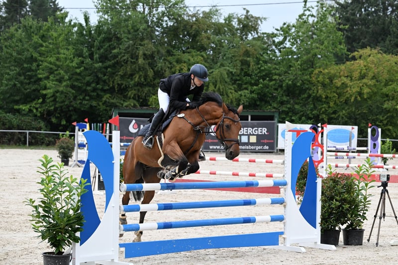 For sale: Well-trained Warmblood gelding, born in 2014, standing at 16.1 hh. This bay show jumper impresses with his solid basic training and reliable jumping ability. He is a versatile partner, excelling in both competition and leisure riding. He has already achieved placings in Morocco and has competed up to 1.15 meters in Germany. He is an excellent amateur horse and very sweet to handle. Please feel free to contact us if interested.