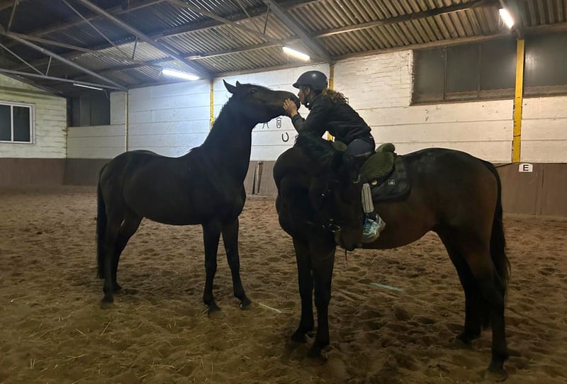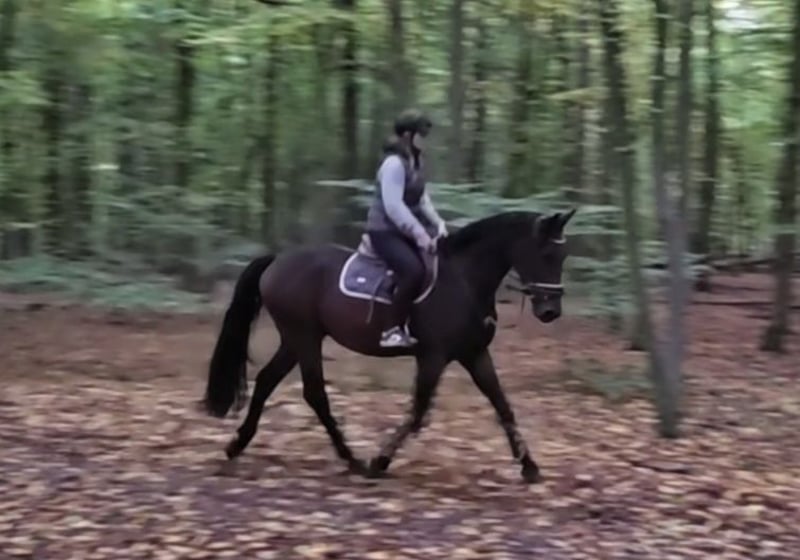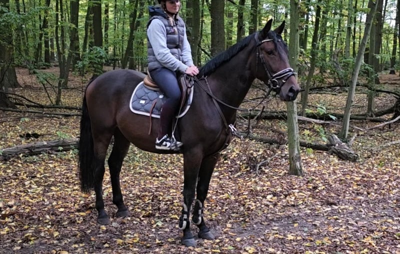 Eddy is a lovable leisure partner who already impresses at the grooming area with his friendly and sweet nature. He is also well-behaved and incredibly cool when riding. Eddy is easy to handle on the reins, has attractive movements, and shows joy and talent over jumps. He is pleasant to ride in dressage, is starting small jumps under the rider, and is absolutely willing and fearless in the field, both in a group and alone. With further training, he could also be suitable for competitive sport. He is so relaxed that he even allows himself to be mounted from the ground. He also enjoys groundwork and small tricks. He is quite curious and a bit playful. Eddy spends the day with other geldings on the paddock and stays in his box at night. He is also familiar with turnout and open stable management. He is a treasure to handle—bathing, farrier, loading, etc., are all no problem. A great opportunity for someone who wants to continue shaping their future dream horse. Almost 4 years old, warmblood gelding, 1.64 m (16.1 hh) Clinical health check available Video: https://youtu.be/qH6W38tlBkA?si=8w2eZvt6WqLIQqtG "Videos, training clips, and further impressions of our sale horses can also be found on Instagram: [maresi_lange]. There you will find additional information and insights into the development of the horses." More horses on my homepage MaresiLange.de or upon request. The description of the horse is based on subjective impressions and experiences of ours and is not a guarantee of properties or qualities. Trial riding is at your own risk. The sale is carried out on behalf of the owner. For viewing/test riding the horse, we kindly ask for a fee of 30 euros, which will be deducted from the purchase price if the horse is bought.