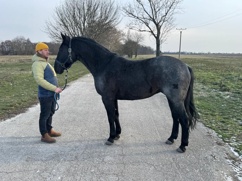 I am offering a young 4‑year‑old Nonius gelding for sale. He has a very interesting colour – grey with a black head in summer, and black in winter. A strong, powerful type with light movement, built in a square frame. Height at the withers: 165 cm, with the potential to grow a little more due to his age. He is excellent to handle: leading, stable work, blanketing, loading into a trailer – all without any issues. Very communicative and friendly towards people. The horse is in excellent health. Regular hoof trimming and dental care have been carried out. He is backed and has basic training: he accepts the bit, walks and trots under saddle, and is just starting with the canter. He also works reliably on the lunge. He is a hardworking, forward‑going type. Due to his age and level of training, he is not suitable for beginners or children. He needs a gentle, patient and consistent rider. He is used to a half‑year 24/7 pasture regime; during winter he was stabled at night, turned out in a paddock during the day, and blanketed. He has no vices, does not kick or bite, and is easy to handle. The price is €7000 including VAT, with VAT deduction possible.