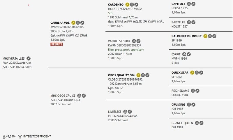 SPANISH SPORT HORSE AUCTION Del 16 al 18 de Marzo ! Regístrate: sshorseauction.com Es un caballo con una calidad extraordinaria, pero también muy sensible y perspicaz. Esto lo convierte en una fantástica promesa para que un jinete profesional lo desarrolle aún más, pero por esa misma razón no es adecuado para un jinete principiante o aficionado. Su padre es "CARRERA VDL", el cual no necesita presentación. Su hermano, "HHS CALAIS" , compite a un nivel de 1,65 m con nada menos que Michael Pender. Versailles también tiene otro hermano, "MHS Fernhill Showtime", que compitió a 1,55 m con Duarte Seabra. Para subrayar aún más su fuerte genética deportiva, eche un vistazo a la tercera madre, que ha producido nada menos que tres caballos de 1,60 m. ¿Busca un caballo sin experiencia con una calidad excepcional para seguir desarrollándolo? Entonces MHS VERSAILLES es el caballo que está buscando