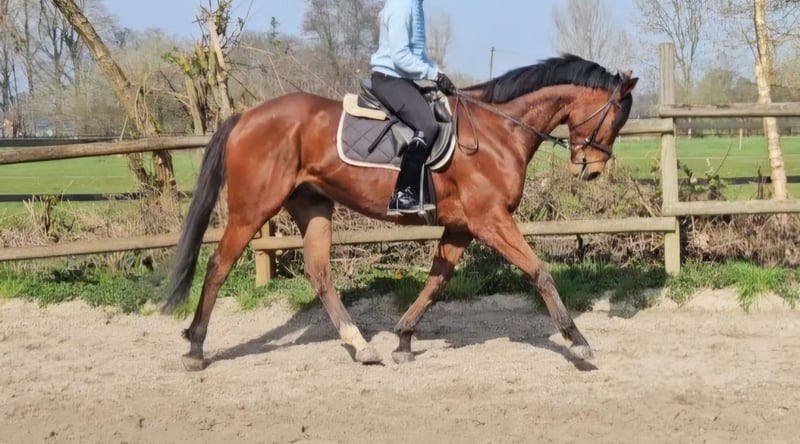 Moon ist ein ca. 168 cm großer Wallach, dieses charmante Kerlchen ist ein toller Allrounder. Er eignet sich für: Dressur, Springen, Vielseitigkeit und auch einfach nur für den Freizeitbereich. Moon verfügt über 3 gute GGA und er zeigt sich sehr leichtrittig. Ideales Damen und Juniorenpferd. Moon ist durch und durch eine coole Socke. Er zeigt sich unterm Sattel immer zuverlässig und unerschrocken auch in neuen Umgebungen. Moon ist im März 6 Jahre alt geworden, er steht noch in der Entwicklung und benötigt noch etwas Muckis. Da arbeiten wir täglich dran. :-) Eine aktuelle tierärztliche Untersuchung liegt bereits vor. Für mehr Infos, freuen wir uns auf Anrufe unter: 0177/2721831. Bei Interesse an Videos, schreiben Sie uns bitte ausschließlich über WhatsApp an.