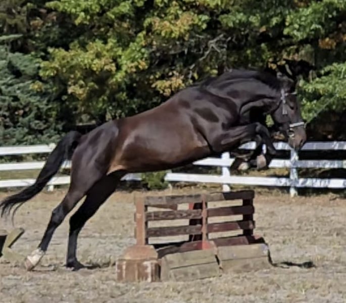 VERFÜGBAR AUF DEM ONLINE-PFERDE-AUKTION bei www.MagicHorseAuction.com GEBOTE sind jetzt offen bis Dienstag, 28. Oktober! – KAUF-OPTION “Jetzt kaufen” verfügbar! *Der endgültige Preis wird auf der Auktionsseite festgelegt* VERKÄUFER-KONTAKT: Katherine Cox, 917-821-4140 STANDORT: Lebanon, NJ „WAF Black Tie Affair ist ein außergewöhnlicher junger Wallach, der nach seinem nächsten Partner sucht. Unglaublich liebenswert und talentiert, ist dieser 5-Jährige 1,66 m groß, im DHH-Register eingetragen und außerdem für das KPWN-Register berechtigt. Black Tie hat sich in Springen und Vielseitigkeit hervorgetan, war in der Nordostregion unterwegs und hat in jedem Wettkampfring, in dem er antrat, Platzierungen erreicht. Derzeit springt er im Springreiter-Wettbewerb über einen Meter und startet im Anfänger-Versuchsbereich der Vielseitigkeit. Black Tie zeigt hervorragende Reflexe, beeindruckenden Umfang, angemessene Vorsicht und einen kämpferischen Geist. Er geht jede Situation mit großem Bewusstsein und starker Arbeitsmoral an. Immer der Publikumsliebling, zeigt Black Tie eine bemerkenswerte Bereitschaft, zu gefallen und zu performen. Er lädt sich problemlos in den Anhänger, wird angebunden, gebadet, geklippt, longiert, ist beim Hufschmied und Tierarzt zuverlässig. Er gräbt nicht und tritt nicht in den Anhänger, wartet geduldig auf seine Runde, auch wenn er alleine ist. Er reist gut und bleibt nachts ruhig im Stall, auch fern vom Heimatstall. Neben seinen Erfolgen im Springen und der Vielseitigkeit ist Black Tie auch auf dem Trail sehr gut unterwegs. Nicht schreckhaft, überquert er Brücken, Baumstämme, Wasser und hat keine Angst vor Hunden, Autos oder Fahrrädern. Er reitet alleine sowie in der Gruppe. Sein Vater ist der führende DHH-Hengst Hightanium, was diesem Wallach die Abstammung und das Talent verleiht, in jede Richtung zu gehen. Ideal für einen ambitionierten Amateur, der nach einem jungen Pferd mit Perspektiven in verschiedenen Disziplinen sucht.“