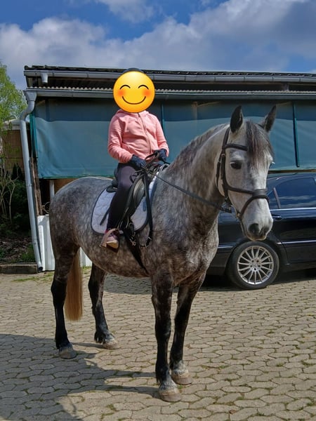 Hallo, Zum Verkauf steht mein lieber Wallach Aragon, geboren 2017, ca. 157 cm groß. Er ist ein ausdrucksstarker Apfelschimmel, der durch seinen tollen Charakter und seine ehrliche Art überzeugt. Trotz seiner Größe deckt er 'auch größere Reiter gut ab'. Aragon ist ein lernwilliges und aufgewecktes Pferd, der seinen eigenen Menschen sucht – jemanden, der mit Ruhe, Geduld und Vertrauen mit ihm arbeitet. Er ist seit etwa einem Jahr solide unter dem Sattel und zeigt sich dabei sehr kooperativ. Sowohl in der Bahn als auch im Gelände ist er brav und unkompliziert unterwegs. Freispringe7n findet er super und macht das mit Freude mit – auch unter dem Reiter hat er bereits erste Sprungerfahrungen gesammelt und zeigt dabei eine gute Übersicht und Motivation. Er wäre am liebsten immer bei allem dabei und ist einfach nur Liebenswert. Ein artgerechtes Zuhause ist mir sehr wichtig – ideal wäre Offenstallhaltung oder ein vergleichbares Haltungsmodell mit viel Sozialkontakt. Keine reine Boxenhaltung. Aragon ist regelmäßig beim Zahnarzt und beim Hufschmied. Anhänger fahren ist noch nicht seine Leidenschaft aber wir arbeiten stehts dran. Geht nicht an Händler!!
