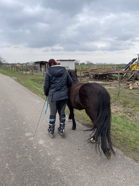 Unsere Tinkerbell sucht für donnerstags noch jemanden der sich uns sie kümmern würde. Egal ob reiten, longieren, spazieren gehen oder einfach nur putzen oder pflegen. Tinkerbell ist 9 Jahre alt und ca. 1,22m groß. Sie kennt soweit alles und geht auch alleine ins Gelände. Du solltest Reiterfahrung haben und sicher in allen 3 Gangarten reiten können. Wir haben einen kleinen beleuchteten Reitplatz und ein schönes Ausreitgelände direkt am Hof. Als Stallarbeit wäre nur ihre Box zu misten und Heu zu geben. Bei Fragen oder Interesse gerne melden.