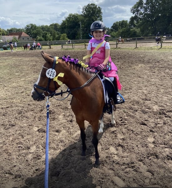 Tolles Kinderpony mit neuwertigen Ikonic Dressursattel und Trense Welsh A Kinderpony 11 Jahre Stute 120cm Suchen Sie ein tolles Kinderpony? Unsere Töchter haben die letzten Jahre mit dem Pony eine Menge Spaß gehabt, viel gelernt und viele Erfolge gefeiert. Ob freihändig ohne alles durch die Halle galoppieren, im Ausritt oder durch das Watt, im Springunterricht, beim Geländetraining, am Strick am Fahrrad durch den Ort oder auf den Turnieren an den Wochenenden mit vielen Siegen und Platzierungen im Führzügel und RWB ist unser Pony stets klar im Kopf. Lässt sich alleine Verladen und bleibt in für sie fremde Umgebungen immer gelassen. Sehr verträglich mit anderen Ponys und Pferden.