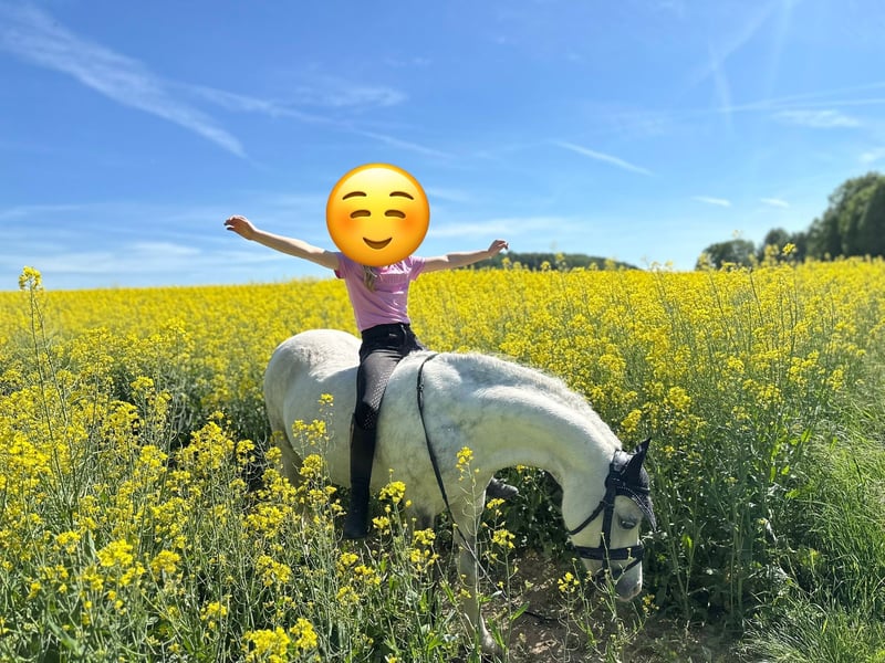 Verkaufe Welsh-A Stute – Vielseitigkeitstalent Leider wachsen Pony‘s nicht mit und deswegen müssen wir uns schweren Herzen‘s wegen Umstieg von Lady trennen. Zum Verkauf steht eine wunderschöne Welsh-A Stute, geboren im Jahr 2014. Diese bezaubernde Apfelschimmel-Dame begeistert durch ihre liebe und verlässliche Art. Sie hat meine 7 jährige Tochter (jetzt 9 Jahre)sicher und sehr erfolgreich vom Führzügel bis hin zum Springreiter begleitet.Sie ist böllig entspannt und lässt sich nicht aus der Ruhe bringen. Sie geht alleine oder in der Gruppe gerne ins Gelände.Ob Auswärtsturnier,Stoppelfeld oder springen ohne Sattel,Lady ist für jeden Spaß zu haben.Singelwoud‘s Hopefuld Lady war nie krank oder lahm. Videos können gerne verschickt werden. Wer ein liebes Kinderpony sucht,wird mit unserem Pony glücklich werden.