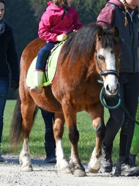 La nostra bella fattrice della scuderia Arvalon cerca una sistemazione ideale. Qualche anno fa è stata impiegata con successo nell'ambito della pedagogia equestre, ma da sette anni è esclusivamente una pony di compagnia. Per questo motivo non possiamo garantire la sua attuale idoneità come pony per bambini e preferiremmo una sistemazione come pony di compagnia o per la riproduzione (ottima genealogia). A quattro anni ha avuto un bellissimo puledro stallone. È dolce nel rapporto e in mandria si comporta senza problemi; a causa della sua facile alimentazione, sarebbe ideale un'area con pascolo limitato. Solo in mani amorevoli.