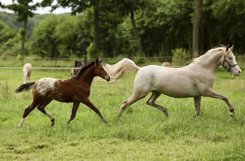 Zum Verkauf angeboten Sehr liebevoller Wallach, geboren im Jahr 2019. Dora (offiziell Djamira’s Djenny) ist offiziell auf 1,47 m gemessen und wurde 2024 bei der regionalen Zuchtschau mit einer Ster-Bewertung ausgezeichnet, anschließend bei der zentralen Zuchtschau vorläufig gekört. Dora besitzt einen NRPS-Pass mit Zuchtbuchpapieren und viel Blut von du Bois. Im Jahr 2024 (Appaloosa braun von A New Story) und 2025 (Appaloosa fuchsfarben von Moonshine) hat sie Fohlen bekommen. Beide Fohlen haben einen schönen Typ und ein angenehmes Wesen. Sie bewegen sich ebenfalls gut. Ende März 2026 ist Dora tragend vom deutschen Palomino-Hengst Next Champion. Dora hat ein sehr ruhiges und freundliches Wesen. Sie erschrickt nicht schnell. Sie ist noch nicht geritten, aber man kann problemlos ohne Sattel auf sie sitzen. Sie kann sehr gut bewegen und springt gern. Sie wäre auch eine tolle Hunter. Dora ist gesund, ohne (Haltungs-)Mängel. Regelmäßig beim Hufschmied, geimpft und entwurmt. Röntgen wurde ebenfalls ohne Beanstandungen durchgeführt. Der Preis inklusive des Fohlens von 2026.