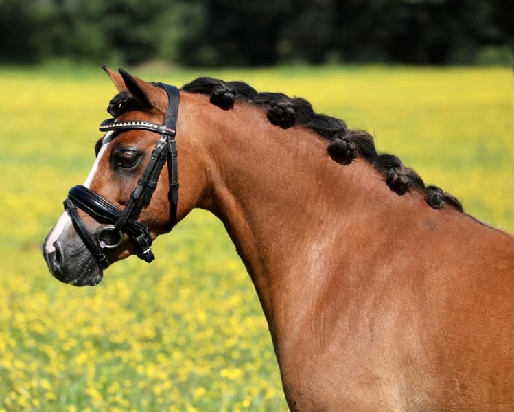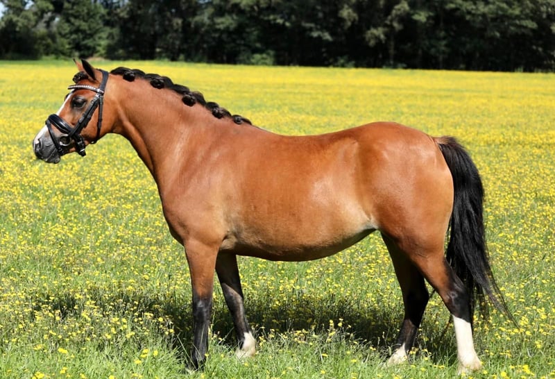 Zum Verkauf stehendes Welsh A-Stutfohlen Melody wurde am 19.05.2018 geboren und hat eine Stockmaß von 120 cm. Brynroyn Trysor x Waxwing Victory Melody ist eine angenehme Pony zum Umgang. Sie ist vertraut mit der Longe und wurde bereits einige Male im Schritt aufgesessen. Sie hat mehrere Fohlen zur Welt gebracht und ist eine liebevolle Mutter. Melody ist gesund und weist keine (Haltungs-)Mängel auf. Kürzlich wurde sie beschlagen und entwurmt.