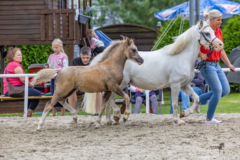 I am offering a seven-year-old Welsh-A pony mare standing at 1.17 meters, sired by Shorebrooks Cooper out of Moorcock Vesper. She impresses with her elegant conformation, clear pony type, and a friendly, human-oriented temperament. The mare has so far produced three healthy, correctly built foals. Her offspring are expressive, eager to move, and demonstrate excellent quality – each foal has stood out positively within its year group. The mare has been lunged but has not been ridden. She is currently in foal to Leybuchts Cadillac for 2027. She is healthy, shoe- and loading-trainable, and will only be placed in responsible and loving hands. If you are interested or would like more information, please feel free to contact me. Viewing is possible at any time by arrangement.