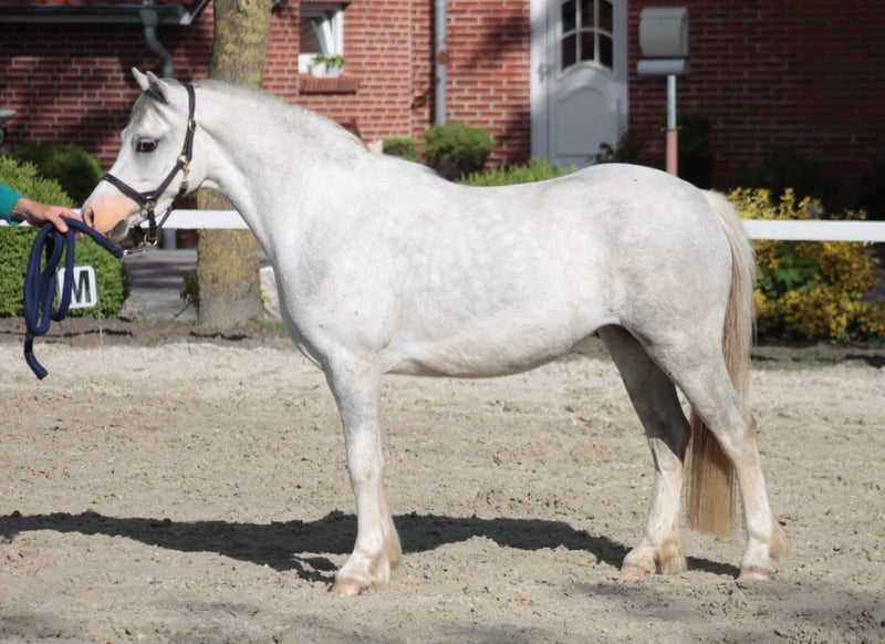 Ich verkaufe hier eine sieben Jahre alte, 1,17m große Welsh-A Ponystute abstammend von Shorebrooks Cooper x Moorcock Vesper. Sie besticht durch ihr elegantes Exterieur, ihren klaren Ponytyp und ein freundliches, menschenbezogenes Wesen. Die Stute hat bisher drei gesunde, korrekt gebaute Fohlen gebracht. Ihre Nachzucht zeigt sich ausdrucksstark, bewegungsfreudig und überzeugt durch Qualität – jedes Fohlen konnte sich in seinem Jahrgang positiv hervorheben. Die Stute ist longiert, aber nicht geritten. Sie ist tragend von Leybuchts Cadillac für das Jahr 2027. Die Stute ist gesund, schmiede- und verladefromm und wird nur in verantwortungsvolle und liebevolle Hände abgegeben. Bei Interesse oder für weitere Informationen freue ich mich über eine Nachricht. Eine Besichtigung ist jederzeit nach Absprache möglich.