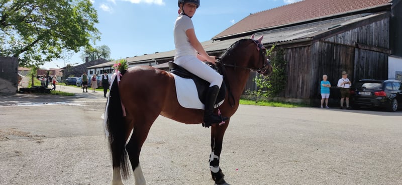 Wir verkaufen schweren Herzen unseren Bildhübschen Welsh A Wallach Pedro. Wer die Nadel im Ponyheuhaufen sucht wird bei Pedro fündig. Pedro ist seit dem absetzen in meinem Besitz und wurde mit 4 Jahren langsam und schonend ausgebildet. Seither hat er auch nie nur einen falschen Schritt gemacht. Pedro ist das Pony meiner 13 jährigen Tochter die mittlerweile viel zu groß für ihn ist, das Pony begleitet sie nun schon fast ihr ganzes Leben weshalb der Verkauf sehr schwer fällt und ganz klar eine Entscheidung pro Pony ist, da er unheimlich gerne im Mittelpunkt steht und gefordert wird. Im Moment hat Pedro eine 9 Jährige Reitbeteiligung die ihn alleine von der Koppel holt und fertig macht. Der hübsche Wallach im Großpferdelook läßt seine Reiter auf jedem Turnier strahlen und kommt nie ohne Schleife nach Hause ,so konnte sich auch seine kleine Reiterin promt in der Führzügelklasse den 3. Platz schnappen. Er gibt für seine kleinen Reiter alles, ist easy an den Zügel zu reiten auch für die kleinsten. Egal ob mit oder ohne Ausbinder, Gelände , Halle , fremde Plätze auf Turnier oder zu Hause . Pedro wurde Anfang des Jahres professionell eingefahren und konnte auch dort sofort punkten . Da die Idee war ihn als Fahrpony für mich zu behalten ,leider muss ich mir eingestehen das fahren nichts für mich ist ,und ich ihm dann da noch nicht die nötige Sicherheit bieten kann. Trotzdem kann man ihn sofort anspannen und losfahren. Ein Pony was rundherum Spaß macht. Auch Mountain Games ,Ponyspiele, Leonhardieritte alleine oder in der Gruppe ins Gelände alles kein Problem. Wir suchen für unseren Pedro nur das beste Zuhause, wo er Kinderherzen und evtl.sogar Fahrerherzen zum strahlen bringen kann. Pedro darf mit seinem über 11 Jahre angesammelten Zubehör ausziehen. Bitte nur ernstgemeinte Anfragen. Pedro war in 12 Jahren nicht einen Tag krank und hat keinerlei Unarten. Im Sommer neigt er zu schubbern hat aber immer volle Mähne und Schweif und bekommt bei Bedarf eine Fliegendecke drauf. Er steht bei uns Nachts in einer Box und Tagsüber auf der Koppel mit seinen Ponyfreunden, eine ähnliche Haltung würden wir uns für ihn wünschen ,er ist sehr sozial, verträglich und verspielt.