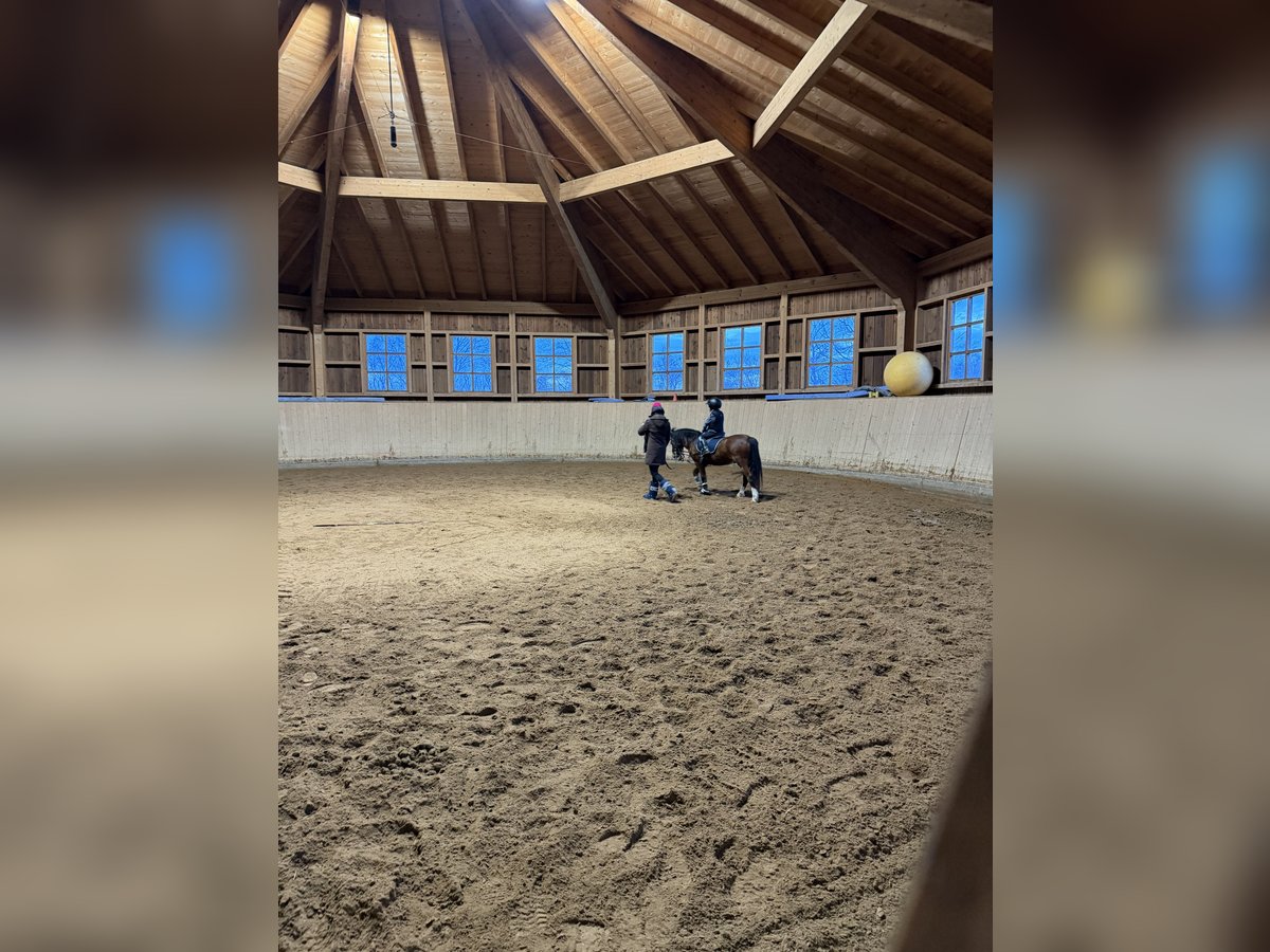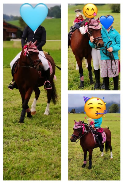 Für unser sehr gut erzogenes, sportliches 12-jähriges Wallach Welsh-A (120 cm) suchen wir eine erfahrene Reitbeteiligung. Es wäre möglich, 2 oder 3 Tage die Woche, am Mo, Mi und WE ab ca 13 Uhr. Das Pony ist sehr lieb, geduldig und ist mit Kindern erfahren. Kein Schulpony – war immer im privaten Besitz! Das Pony ist turniererfahren und absolut gesund. Es gibt einen frischen TA Befund. Idealerweise für ein fortgeschrittenes Kind bis ca 13 Jahre (nicht mehr als 50 kg) oder eine Reitmami mit einem Anfänger Kind. Ausbildungsstand: Dressur E, Springen A Pony ist longiert, liebt Bodenarbeit (Stangen, Freisrbeit, usw). Unser Stall befindet sich direkt an der Autobahn (85622) und bietet: große, helle Reithalle (Hufschlagmaß 24 × 64 m) beheiztes Reiterstüberl mit Blick in die Reithalle, Getränkeautomat Longierzirkel Longierhalle Freilaufführanlage Allwetterspringplatz (30 × 70 m) Allwetterdressurplatz (20 × 60 m) Reitwiese, Galopp- und Hindernisstrecke, Ausreitgelände beheizte Sattelkammern Qualifiziertes Dressur und Springen Unterricht vor Ort ist möglich aber ist in den Angebot nicht inbegriffen.