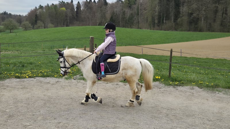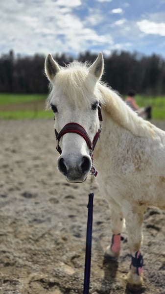 Prinz ist ein wunderschöner, 18-jähriger Schimmelwallach mit einem lieben und zuverlässigen Charakter. Früher lief er in einer Reitschule und wurde bei uns hauptsächlich im Gelände von meiner 6-jährigen Tochter geritten. Auch beim Muki-/Vaki-Reiten macht er brav mit und bringt Anfänger sicher von A nach B. Auf dem Reitplatz zeigt sich Prinz ebenfalls brav, benötigt dort jedoch eine konsequente und sichere Führung. Im Gelände ist er ein echter Verlasspartner und bereitet Gross und Klein viel Freude. Prinz ist sehr sozial und herdenverträglich. Aktuell lebt er mit unseren Shettys im Offenstall, was er sehr schätzt. Er ist lange Weidezeiten gewohnt, vorne beschlagen und hinten barhuf. Da meine Tochter sich nun vermehrt dem Springsport widmen möchte, haben wir uns schweren Herzens entschieden, für Prinz ein neues Zuhause zu suchen. Wir wünschen uns für ihn einen liebevollen Endplatz bei geduldigen Menschen oder einer netten Familie mit Kindern, die mit ihm noch viele schöne Ausritte geniessen möchten. Prinz ist nicht turniergeeignet, da ihn solche Situationen stressen. Daher suchen wir bewusst einen ruhigen und passenden Platz, an dem sein Wohl an erster Stelle steht. Platz vor Preis – kein Notverkauf.