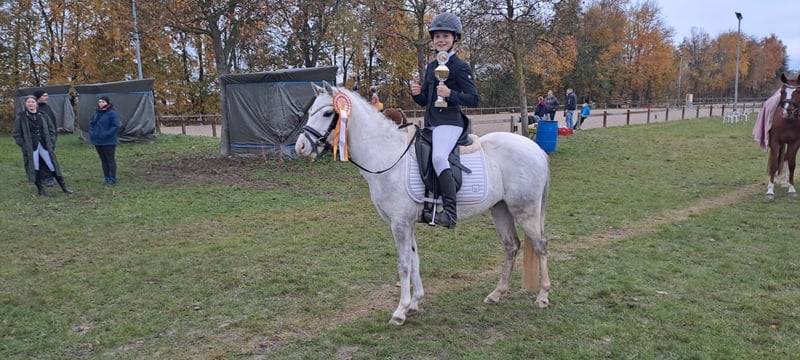 Wir verkaufen unseren kinderlieben, bildhübschen Mucki, 7j., 128 cm, da meine Tochter zu gross ist und sie jetzt schon die Endmassponys reitet. Meine Tochter reitet Mucki auf einem sicheren WBO /Anfang E Niveau. Mucki durfte schon an zahlreichen Turnieren teilnehmen, wo er fast immer siegreich oder platziert war. Er geht brav in der Abteilung, egal an welcher Stelle, läuft brav an der Longe mit Anfängern und kennt auch mit Ausbindern geritten zu werden. Mucki springt einen Parcour auf WBO Basis, was ihm viel Spass bereitet. Dabei zeigt er Vermögen und Übersicht. Man kann auch mit Mucki ausreiten. Er kennt es auch mit den kleinsten Reitanfängern am Fahrrad mit zu laufen. Er ist den Kindern durch seine freundliche Art stets zugewandt. Die Kinder können alleine mit ihm umgehen. Sie können ihn putzen, verladen, waschen, longieren usw, ohne das ein Erwachsener mit dabei sein muss. Dabei achtet er auch auf die jüngsten Reitanfänger. Wir wünschen ihm eine tolle Familie, die ihn genauso schätzt und lieb hat. Mucki war bei uns noch nie krank. Er wird in sein neues Zuhause mit einer gültigen kl. Aku abgegen. Gerne verschicken wir weitere Videos 015236768283 nur über WhatsApp Vielen Dank