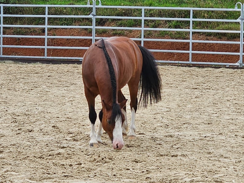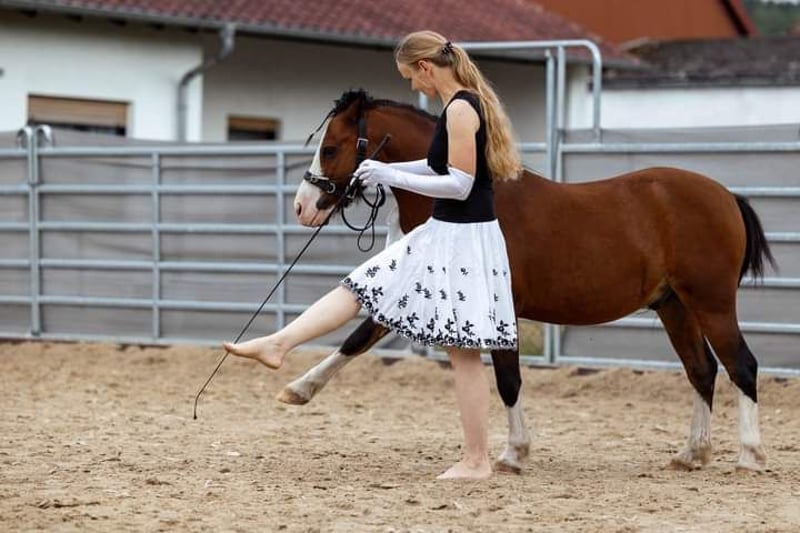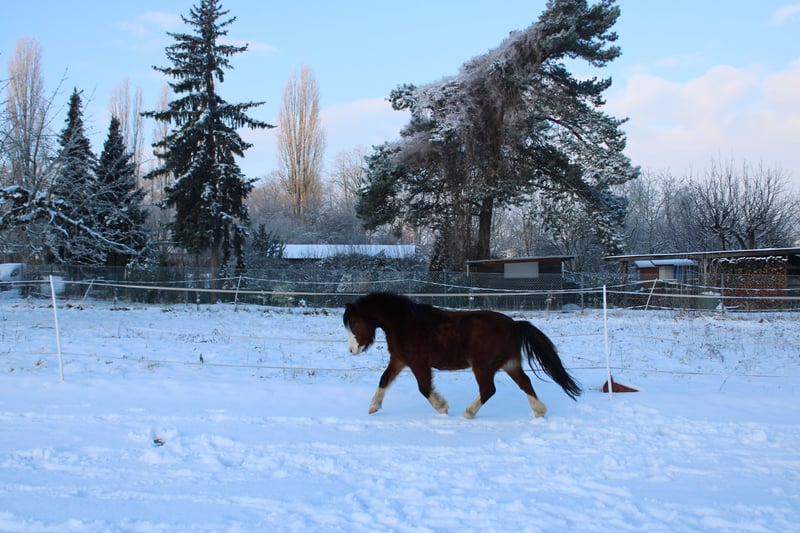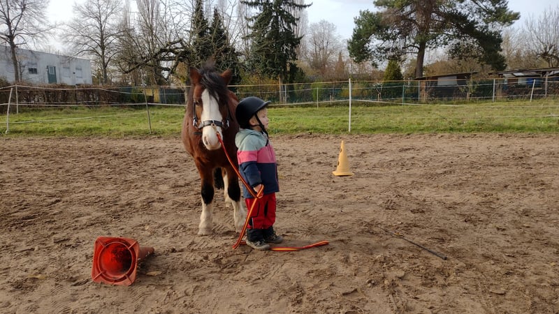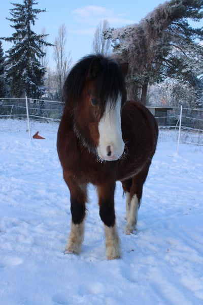 Unser Matti ist das perfekte Kinderpony. Er liebt es betüdelt zu werden, um Pylonen oder kleine Stangen geführt zu werden oder auch Kindern die ersten Schritte auf dem Pferderücken zu versüßen. Außerdem beherrscht Matti die Zirkuslektionen spanischer Schritt, Kompliment, Sitzen, Liegen und das Steigen auf Kommando. Er ist am Langzügel ausgebildet und zeigt in der klassischen Handarbeit alle Seitengänge an der Hand und den Beginn von Galopppirouetten - außerdem beherrscht er an der Hand Piaffe und Passage, Levade und Schulhalt. Er ist eingefahren und liebt flotten Trab am Sulky- Jetzt im Winter hat er den Schlitten durch den Pulverschnee gezogen und so viele Kinder glücklich gemacht. Und unser Matti hat noch Kapazitäten! Was wir suchen ist ein Paar, gerne ein pferdebegeisterter Elternteil mit Kind für ein oder zwei Tage die Woche. An diesem Tag fällt der Stalldienst an, das heißt 1-2 Schubkarren abäppeln. Außerdem erwarten wir ein Kostenbeteiligung von 100 Euro pro Monat. Diese Kostenbeteiligung enthält Unterricht, damit ihr gleich von Anfang an lernt, wie ihr aus Matti das Beste rausholen könnt. Und damit es nicht zu Missverständnissen kommt. Natürlich darfst du seine Ausrüstung nutzen, solange du damit pfleglich umgehst. Zum Trainieren steht ein Reitplatz zur Verfügung, ein Roundpen und allerlei Stangen, Pylonen, Poolnudeln und anderen Trainingsutensilien. Außerdem ist der Main fußläufig erreichbar. Der Stall befindet sich im Ortsteil Klein-Auheim. Wenn ihr gut zusammengefunden habt, entfällt der Unterricht und die Kostenbeteiligung reduziert sich um 50 Euro. Unterricht kann natürlich auch weiter genommen werden. Matti ist aufgrund seiner Größe bis 30 kg belastbar. Wenn du dich angesprochen fühlst, freue ich mich auf ein Kennenlernen!