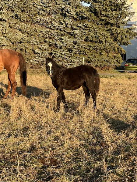 Zum Verkauf steht ein typvolles Welsh B Stutfohlen, geboren am 11.05.2025. Sie begeistert mit ihrem eleganten Exterieur, einem ausgeglichenen und menschenbezogenem Charakter und den elastischen Grundgangarten. „Jumanji“ beherrscht bereits das Fohlen-ABC und war dabei immer neugierig und lernwillig. Sie wächst aktuell mit Stuten im Alter von 5 - 17 Jahren im Offenstall auf. Sie ist gesund, korrekt gebaut und kennt bereits Hunde, Trecker und Straßenverkehr. Ihr Endmass wird bei ca. 134cm liegen. Damit eignet sie sich hervorragend als zukünftiges Sport-, Show- oder Familienpony und bringt dank ihres klaren Köpfchens und ihrer Bewegungsfreude beste Voraussetzungen für eine harmonische und erfolgreiche Ausbildung mit. Beide Elternteile sind geritten sowie gefahren und zeigten sich dabei sehr unkompliziert. Eingetragen wird sie beim Neustädter Verband, die Passausstellung ist in Bearbeitung. Nun ist sie bereit in ein neues Zuhause zu ziehen. Wir wünschen uns für sie eine erfahrene, pro-Pferd Denkende Bezugsperson! Später mit hoher Wahrscheinlichkeit auch ein tolles Kinderpony. Vater dieses tollen Fohlens ist Frankenhoeh's Merlin(https://www.rimondo.com/de/horse-details/159028/frankenhoehs-merlin). Direkt vom Züchter, 2000€ VB. Bei Interesse schicken Sie hier gern eine Nachricht, dann kann Jumanji nach Terminabsprache gerne besichtigt werden.