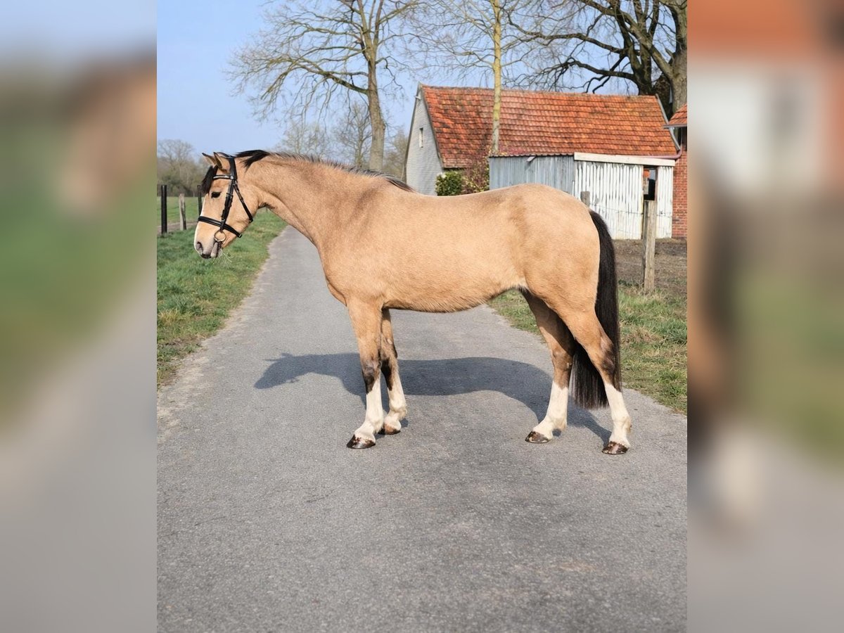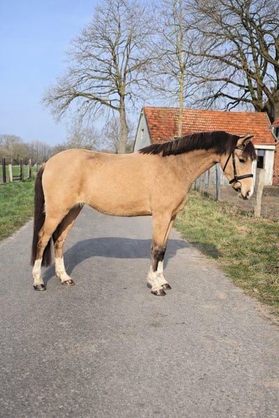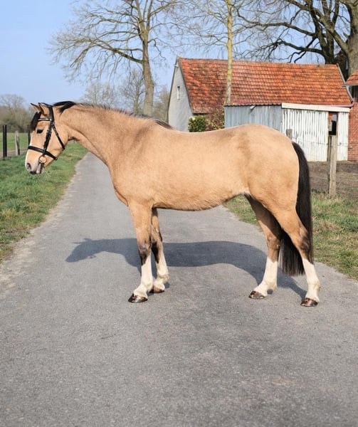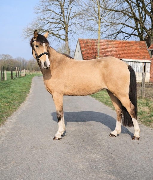 Sie sind auf der Suche nach etwas Besonderem – einem echten Eye-Catcher? Dann könnte diese wunderschöne, dreijährige Falb-Welsh-B-Stute genau das Richtige für Sie sein. Sie stammt ab von The Bears by Mobility und überzeugt nicht nur durch ihre auffällige Optik, sondern auch durch ihre hervorragenden Reiteigenschaften. Die junge Stute zeigt sehr gute dressurmäßige Bewegungen sowie großes Talent und Übersicht am Sprung beim Freispringen. Sie ist bereits angeritten und präsentiert sich dabei stets brav, ausgeglichen und lernwillig. Aufgewachsen in liebevoller Menschenhand, ist sie sehr menschenbezogen und im täglichen Umgang absolut unkompliziert. Sie kennt Kinder, ist mit ihnen groß geworden und auch an Hunde sowie lebhaften Alltagstrubel bestens gewöhnt – ein echtes Verlasspony für die ganze Familie. Ihre Mutter ist ein bewährtes Kinderpony, sowohl eingeritten als auch eingefahren, was ihre hervorragenden Anlagen zusätzlich unterstreicht. Wir wünschen uns für diese besondere Ponystute ein schönes, förderndes Zuhause, in dem sie weiterhin liebevoll ausgebildet und gefördert wird. Bei ernsthaftem Interesse freuen wir uns über Ihre Kontaktaufnahme.