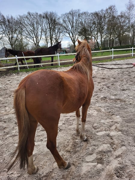 Super brave Welsh Stute zu verkaufen. Rhossyn van Bombaij (Rosi) ist ein aufgewecktes, neugieriges und arbeitswilliges Pony. Sie ist ca. 134 cm groß. Rosi ist anlongiert, und kennt Reitergewicht im Schritt. Außerdem hat sie auch schon am langen Zügel einen Reifen gezogen. Ich kann mir Rosi sowohl als Reitpony als auch vor der Kutsche gut vorstellen. Rosi ist unerschrocken und absolut klar im Kopf. Sie kennt, Hunde, Trecker und ist gut herdenverträglich. Sie kennt Spazierengehen auch alleine. (geht also auch gut von der Herde weg) Sie ist menschenbezogen, aber nicht auf bestimmte Personen fixiert. Rosi hat gute Papiere und wäre auch für die Zucht gut geeignet. Vater = Byley Aragron Vater/Vater = Hilin Tattoo Mutter/Vater = Wheemhoeve´s Marko Wir haben Rosi vor vier Jahren als Beisteller für ein eigenes Fohlen in Holland gekauft. Jetzt haben wir leider keine Aufgabe für Rosi und sie ist bereit für weitere Lektionen. Deshalb geben wir sie jetzt ab. Wir wünschen uns für Rosi ein super neues zu Hause mit neuen Aufgaben (reiten, fahren...?) oder jemanden der mit ihr züchten möchte. Platz vor Preis! (aber verschenkt wird sie nicht!! ;-) ) kein Notverkauf! Bei Interesse gerne melden, dann kann ich auch noch mit Videos dienen. Gruß Hartmut Hölter 0162-3630036