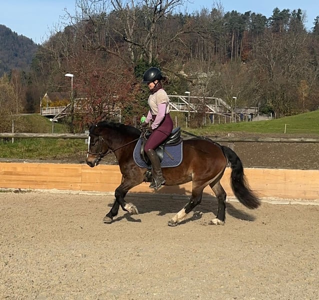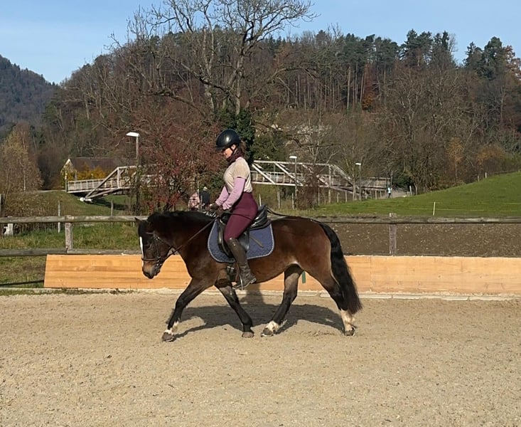 Motivierte Ponystute, mit viel Ausdauer. Für ihren starken Charakter braucht Reni eine erfahrene Person, die ihr Strukturen gibt. Sie kennt Bodenarbeit, ausreiten, longieren, dressurmässiges Reiten und kleine Sprünge. Mit klarer Führung kann Reni gut von Kindern geritten werden. Gruppenhaltung gewöhnt. Ihr Sommerekzem ist mit einer Decke gut händelbar. Grund für Verkauf: zur Zeit wird sie als Reitschulpony eingesetzt, eine feste Bezugsperson wäre für sie aber besser geeignet.