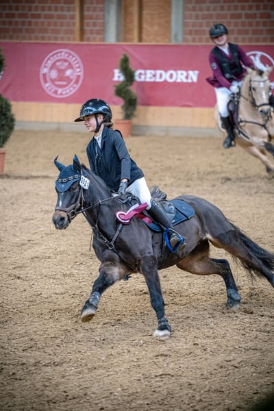 We are selling our wonderful 11-year-old Welsh B pony gelding "Balou rocks", a true talent in jumping and on the dressage arena. Details: Name: Balou rocks Breed: Welsh B Age: 11 years Height: approx. 1.30-1.35m Color: Dark brown Complete papers & competition pony registration Current vet check available Usage & Achievements: Placed in A* and A** jumping (style & time) Won E-dressage Won lead rein class Trail safe, loads well – goes easily through water ditches and jumps logs Character & Suitability: Balou is a beautiful pony with a solid, athletic foundation. He consistently shows a lot of potential in both jumping and dressage. For the right rider, he is a real dream! He is not a beginner pony but is perfectly suited for children or smaller teenagers with ambitions in jumping and dressage. Further Information: Regular hoof care, vaccinated and dewormed. Only to be sold to the very best hands, as a transition to a larger horse is taking place. Trial Ride: We charge €20 for the trial ride, which will be deducted from the purchase price later. If you are interested or have further questions, please feel free to contact us!