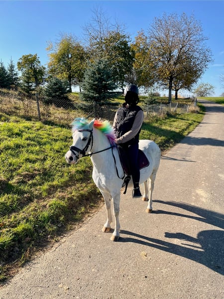 Hallo, ich bin ein 13-jähriger Welsh-Mix Wallach mit 1,30 m Stockmass – klein genug für Kinder, gross genug für echte Abenteuer. Ich liebe es, wenn man sich mit mir beschäftigt. Putzen finde ich grossartig (vor allem am Hals kratzen), und ich geniesse jede Aufmerksamkeit. Menschen sind für mich keine Pflicht, sondern Herzenssache. Unter dem Sattel bin ich motiviert und aufmerksam. Schritt, Trab und Galopp beherrsche ich sicher, ich kenne Halle, Platz und Gelände. Turnierluft habe ich auch schon geschnuppert – beim Führzügel war ich ganz cool und habe mir nichts anmerken lassen. Ich bin kein langweiliges „Mitlauf-Pony“, sondern ein ehrlicher Partner. Wenn mein Reiter sich Mühe gibt, gebe ich sie doppelt zurück. Gemeinsam lernen, gemeinsam wachsen – das macht mir Spass. Als Handpferd gehe ich brav mit, beim Schmied halte ich still, verladen klappt ebenfalls gut. Ich bin vorne beschlagen, regelmässig geimpft und entwurmt. Meine AKU im September 2025 war ohne Befund. Was ich mir wünsche? Ein Kind mit ersten Reiterfahrungen oder einen Jugendlichen, der Lust hat, mit mir weiterzukommen. Jemanden, der nicht nur ein Pony sucht, sondern einen Freund. Ich freue mich darauf dich kennen zu lernen!