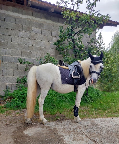 Nous vendons notre poney entier pour des raisons de temps. Il a 16 ans et vit chez nous en paddock + en pâture l'été. Il a été principalement monté en extérieur au pas et au trot, ou en tant que cheval de compagnie. Il se montre courageux dans ces situations. Il est également régulièrement longé. Lors du pansage et de la ferrure, il est calme et obéissant. Il est en bonne santé, vermifugé, et ferré. Son passeport équin est disponible. Selon l'ancien propriétaire, il a un problème avec les juments et se montre un peu stallion lorsqu'il est en présence de femelles. Pour nous, en tant que détenteurs d’un entier, cela n’a jamais posé de problème. Chez ses anciens propriétaires en Autriche, il a également été utilisé en école pour de jeunes enfants. Si intéressé, il est possible de le venir voir.