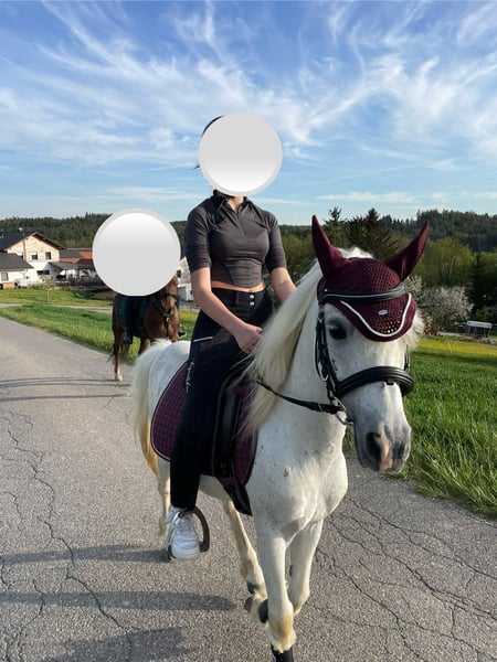 Wir verkaufen aus zeitlichen Gründen unseren Pony Wallach. Er ist 16 Jahre alt und steht bei uns im Offenstall+ im Sommer auf der Weide. Er wurde hauptsächlich im Gelände Schritt und Trab geritten oder ging als Handpferd mit. Dort zeigt er sich unerschrocken. Er wird auch regelmäßig longiert. Beim Putzen und Hufe geben ist er brav. Er ist gesund, entwurmt und schmiedefrom. Equidenpass ist vorhanden. Lt. Vorbesitzer hat er ein Problem mit Stuten und zeigt sich Stuten gegenüber hengstisch. Für uns als Wallach-Halter war das kein Problem. Bei den Vorbesitzern in Österreich war er auch im Schulbetrieb für kleine Kinder. Bei Interesse kann er gerne besichtigt werden.