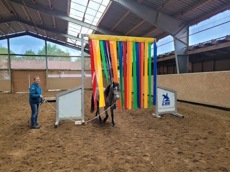 Geb. 01.05.2023 Standort: 87672 Roßhaupten Preis: 2.900,- € Größe: wird ca. 135 cm Farbe: Aktuell: Braun/Grau, entwickelt sich zu Schimmel mit schwarzem Behang Kontakt: 0171/3466872 Mein Kienbergs Diamond Deluxe ist ein charmanter, motivierter Youngster, der mit viel Herz und Verlässlichkeit überzeugt. Sein erstes Lebensjahr durfte er aufwachsen auf den großen Weiden in einer großen Herde des Gestüts Kienberg in Rennertshofen. Seit seinem Einzug bei mir hat er seinen Charakter deutlich gezeigt: verspielt, neugierig, mutig und offen für Neues. Sein Ausbildungsstand umfasst zwei Jahre Horsemanship am Boden – er beherrscht Verladen, Hufe geben, Hufschmied, Anbinden, Satteln, auch das Wandern alleine macht ihm Spaß, ebenso war er schon Schwimmen mit mir. Anspruchsvolle Trails (Extreme Trail) und mehrere Geschicklichkeitsparcours zählen auch zu seinem Erfahrungsschatz. Diamond liebt Denksportaufgaben und beweist dabei klare Konzentration und Freude an der Herausforderung. Letzten Sommer durfte er auf einer Alm verbringen zusammen mit einer Kuhherde und vielen Radfahrern. Verkauft wird er bewusst in Horsemanship-Hände, die ihn fachlich fordern und weiter fördern können. Er ist ideal für jemanden, der seinen Pferdesport mit ruhiger, freundlicher, konsequenter Arbeit weiter vorantreiben möchte und Spaß daran hat, ihn geduldig zu fördern. Diamond ist bereits gegen vieles desensibilisiert und zeigt sich sportlich und bewegungsfreudig.Er liebt die Bewegung, aber vor allem die geistige Herausforderung. Wichtige Hinweise: Diamond wünscht sich einen erwachsenen Partner, der max. 60 kg wiegt, wenn er geritten werden soll. Aber auch als toller Partner für Menschen, die Pferde nur am Boden ausbilden möchten ist er ideal. Da er über ein gewaltiges Potential verfügt, kann er auch als Showpferd eingesetzt werden. Er entwickelt sich weiter: seine Farbe verändert sich von Braun/Grau zu Schimmel mit schwarzem Behang. Seit dem ersten Tag bei mir dokumentiere ich auf meinen Seiten in Instagram und Facebook jeden Fortschritt mit Videos zu jedem Schritt – so können Interessierte den Weg nachvollziehen, vom ersten Kontakt bis heute. https://www.instagram.com/silvia_mathoi_horsemanship/ https://www.facebook.com/silviamathoihorsemanship Wenn Du Interesse an Diamond hast, freue ich mich über eine Nachricht oder Anruf unter der angegebenen Nummer. Gerne stelle ich Dir weitere Bilder und Details zum Charakter und dem richtigen Training vor. Diamonds neue Herausforderung wartet – mit Dir an seiner Seite könnte er der perfekte Partner für eine tolle Horsemanship-Laufbahn werden.