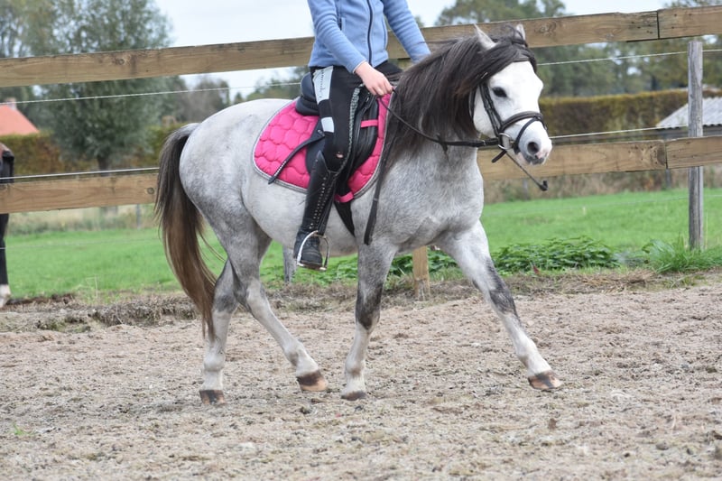 Cuppers Winston ist der Name dieses fast vierjährigen, wunderschönen Pferdes! Sein Rufname ist Blue Boy. Er trägt eine beeindruckende, blaue Apfelschimmel-Farbe. Er besitzt eine fantastische Blutlinie: Hier klicken für seine Papiere: Eindegooi’s Pretty Charmer x #Oldenzijlster Action Man x #Vechtzicht’s Cymro Bach. Er hat eine prächtige, volle und dennoch elegante Konstitution. Ein Köpfchen, das direkt aus einem Disney-Film zu stammen scheint. Und sein Gangbild ist spektakulär! Mit Blue Boy wurde bereits viel Bodenarbeit gemacht, und er ist hier sowie zuvor stets äußerst brav im Umgang, in der Trailerfahrt, auf dem Paddock und auf der Weide. Winston ist momentan ein Wallach, doch als Hengst war er bereits sehr brav. Er wächst nun in die Höhe und ist eine große B-Maß. Er ist ein äußerst kooperativer, superlieber Wallach. Er findet das Reiten sehr angenehm und möchte gerne weiter wachsen: Für die Freizeitreiter ist er hier bereits brav genug, aber auch als Sportpony ist er sehr gut geeignet. Wir erwarten, dass er sehr leicht zu erziehen ist, auch für Kutschenfahrten – das wird bestimmt ein wunderschönes Bild! Er liebt das Reiten sehr und ist von Anfang an brav dabei gewesen; wir konnten sofort ohne Probleme auf ihn draufsteigen. Preis: 4.750 € inklusive Marken-Sattel und Abschwitzdecke.