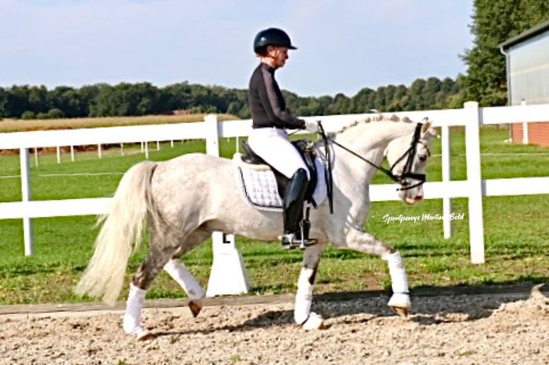 Valid FEI passport available sire: Goldencoast Eros x dam: Jedidjan Johannes With "North Finn Flame," aka Lasse, we have an absolute dream pony. "Lasse" combines a sporty heart with a love for play and fun. Additionally, he is simply stunning and incredibly sweet. In short, "Lasse" is a true heart pony! Even though "Lasse" is on the smaller side in terms of size, he easily accommodates larger riders. Under saddle, he appears very big, making it hard to distinguish him from some full-sized ponies. "Lasse" is very well trained, allowing even smaller children and inexperienced riders to benefit and learn quickly from him and his routine. He is absolutely reliable in lessons and easy to ride. With his previous rider, who has now outgrown the pony age, "Lasse" has achieved numerous victories and placements in FEI competitions. Among their greatest successes this year was winning the bronze medal at the Finnish Championships! Besides working in the arena, "Lasse" loves long trail rides; whether it's dark or light outside, or if there's a lot of snow, the gelding enjoys it and always looks out for his rider. Furthermore, "Lasse" shows great skill over jumps during occasional jumping sessions. Anyone looking for an absolute dream pony with a guarantee of ribbons should not miss out on "Lasse." A radiological certificate is available. https://youtu.be/yAQQA_8sunw?si=8eKhHA3LTBJnfM0N For serious inquiries, please feel free to contact us by phone at +491707941333.