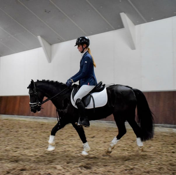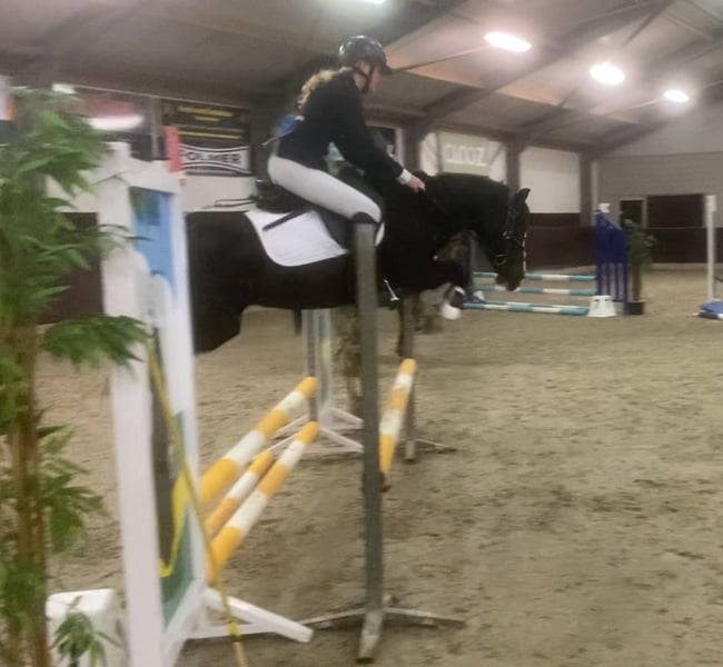 Perfect is a very sweet pony to handle and definitely suitable for small children. She doesn't bat an eye and is super easy to ride on other terrain. She's not skittish or shivering at all. She's a forward-moving pony, but she won't bolt, just keeps a good pace and is easy to ride and keep close. She loves jumping the most; she jumps a 60/70cm course and flies over everything with ease. She turns quickly and easily covers distances. Ideal for a young rider who wants to get into show jumping. She's also been on a bixie ride once, where she does her round and her 20cm course very calmly and well-behaved with a 9-year-old girl. On trail rides, she's also well-behaved and loves it. She'll go on the trailer alone and go to the woods with her. In the pasture, she's never been difficult with other ponies. Perfect is healthy and doesn't have any quirks. For more information or videos, please send a message. 06 83064251